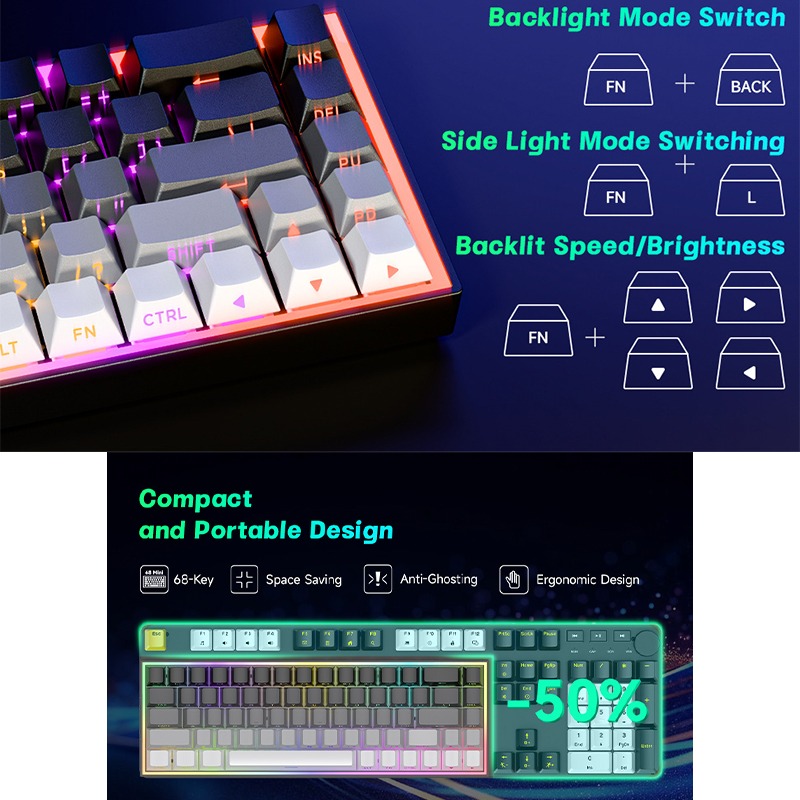 Compact et portable: La disposition à 68 touches offre un design compact, économisant un espace précieux sur le bureau sans sacrifier la fonctionnalité. Sa petite taille le rend très portable, parfait pour les utilisateurs qui ont besoin d'un clavier pour une utilisation en déplacement ou qui ont un espace de bureau limité. Le câble détachable améliore encore la portabilité, permettant un stockage et un transport faciles. Ce clavier est un excellent choix pour les étudiants, les voyageurs et tous ceux qui apprécient une configuration minimaliste. La conception compacte ne compromet pas la fonctionnalité des touches, fournissant toutes les touches essentielles dans une disposition simplifiée. La connexion filaire assure une connexion stable et fiable, essentielle pour un flux de travail ininterrompu.