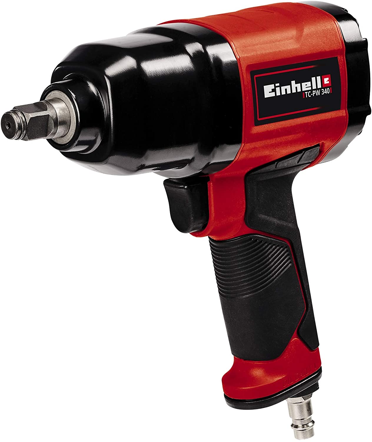 La clé à chocs pneumatique Einhell TC-PW 340 est puissante et robuste, travaillant avec un couple maximal de 340 Nm. La poignée en caoutchouc antidérapante sécurise le travail. Proposant une rotation à gauche (1 position) et à droite (3 positions), la clé à chocs pneumatique peut exécuter différentes tâches. Un tuyau de minimum 9 mm de diamètre intérieur permettra d'obtenir les meilleurs résultats. Fournie avec 8 douilles (8/10/11/13/17/19/21/22 mm), un flacon d'huile et un raccord. L'outil est livré dans son coffret de transport et de rangement.