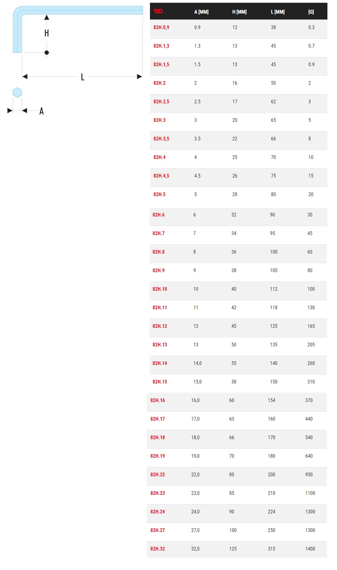 - Type de clé hexagonale : clés hexagonales courtes - En forme de L