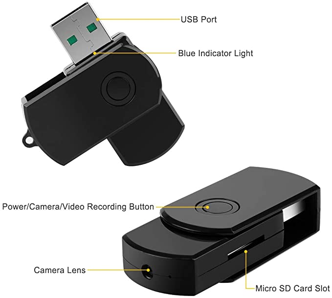 Libellé Clé USB Caméra Espion Mini Caméra Appareil Photo Vidéo HD Micro SD Noir + SD 16Go YONIS