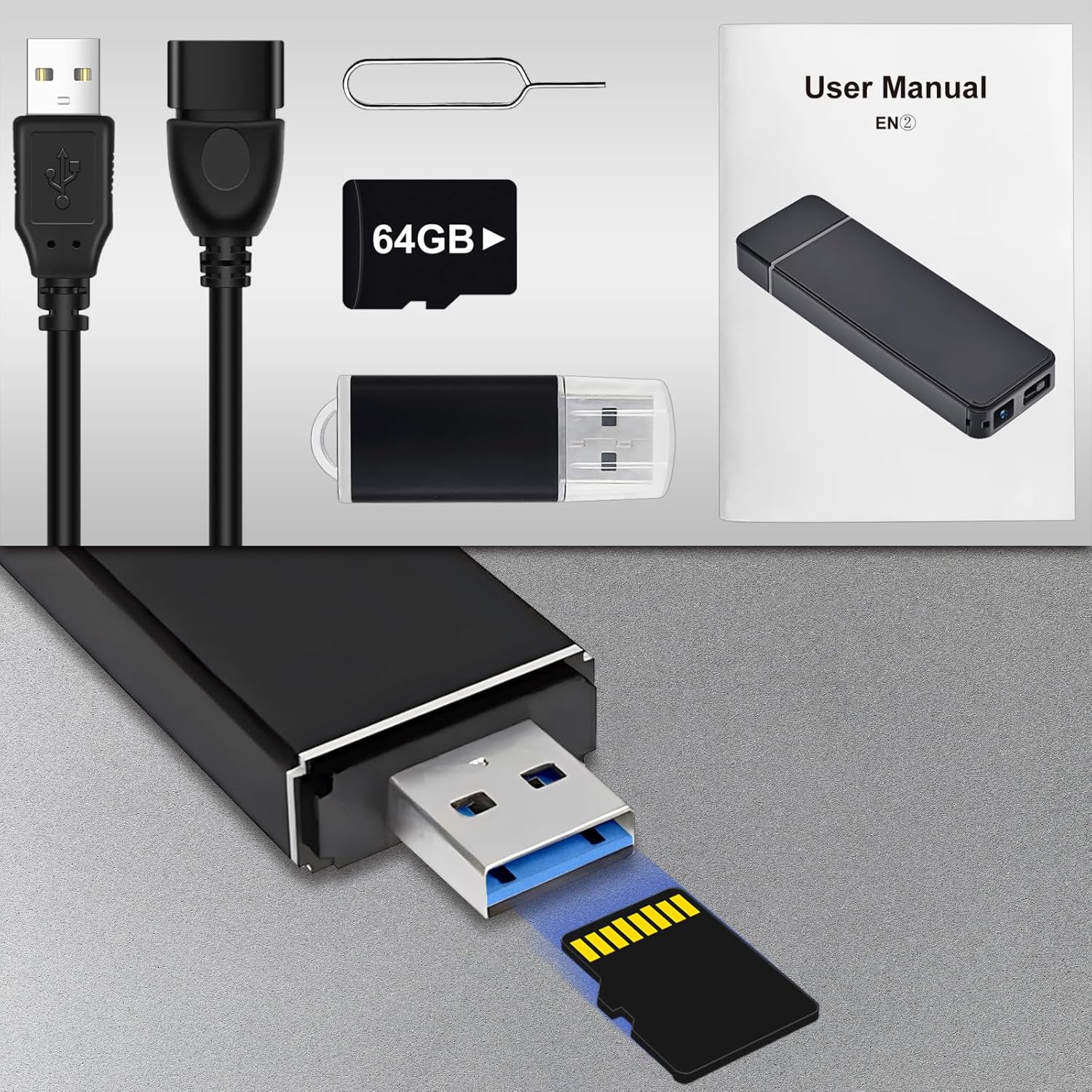 Fonctionnalités avancées de la Clé USB caméraÉquipée d'un enregistrement sur détection de mouvement, cette caméra optimise l'utilisation de la mémoire et de la batterie en enregistrant uniquement lorsque cela est nécessaire. Sa compatibilité avec les cartes micro SD jusqu'à 128 Go assure un stockage étendu pour tous vos fichiers.