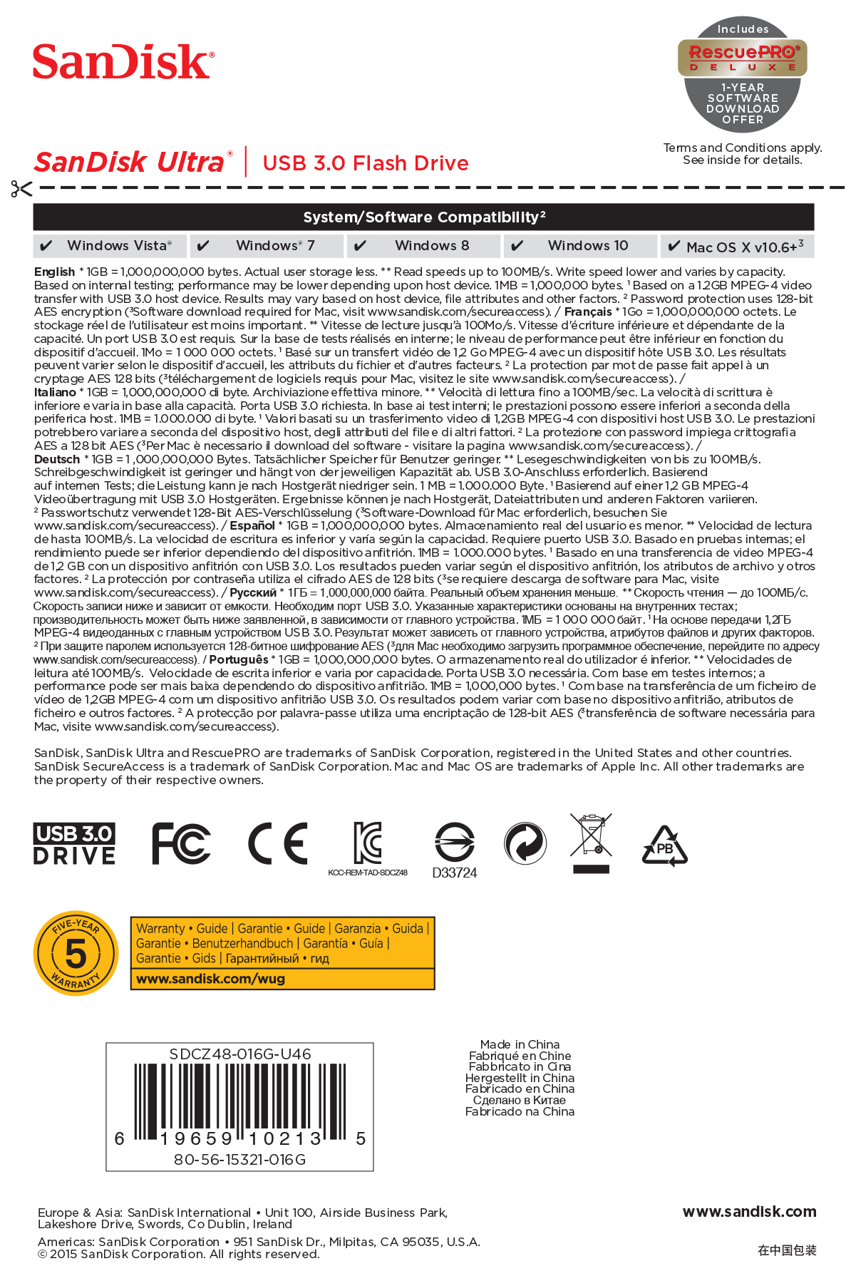 | Part Number (référence fabricant) | SDCZ48-016G-U46 |
