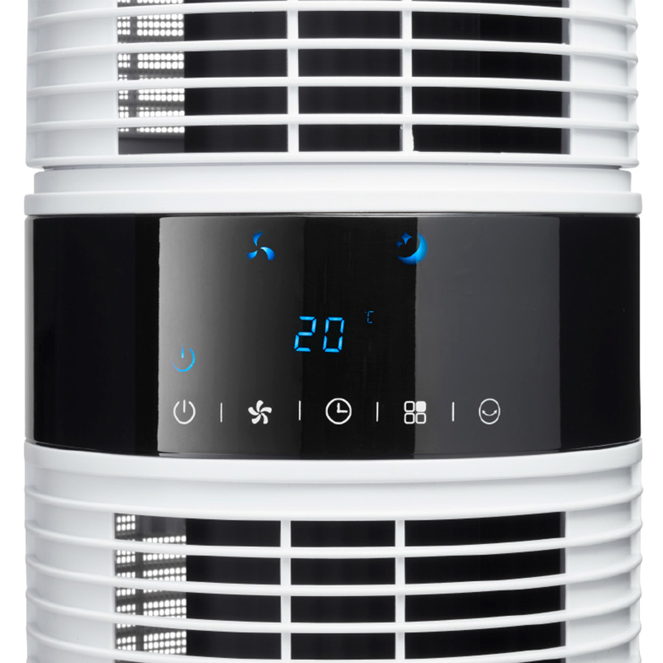L'excellent design du ventilateur de design Clean Air Optima CA-406W offre un modèle tour ultra-fin, combinant un design esthétique et efficace avec une efficacité, s'intégrant ainsi dans tous les intérieurs. Réglage confortable via télécommande et fonction de minuterie. Flux d'air dynamique réglable de 7 mètres/seconde à une douce brise rafraîchissante grâce à un grand angle de rotation horizontale de 90°.