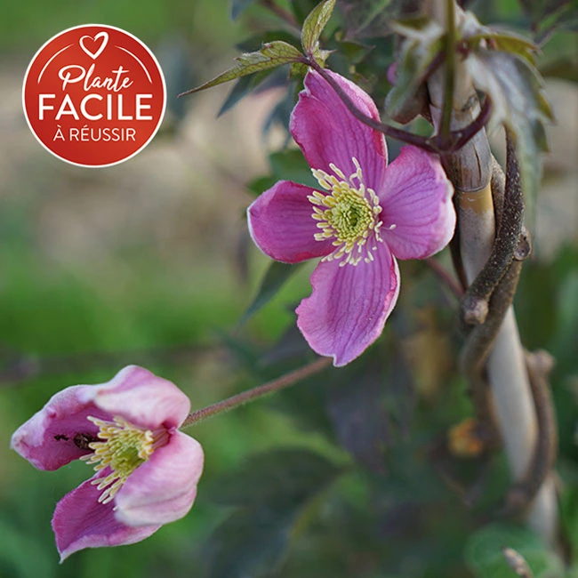 Plante grimpante de grande végétation. Clématite à petites fleurs de 6 à 8 cm de diamètre, de couleur rose très soutenu éclairées par un bouquet d'étamines jaunes. Abondante floraison printanière remontante en été. Feuillage vert bronze. S'accroche seule à son support grâce à son feuillage. Idéale pour habiller une clôture ou une pergola. Variété très florifère. Le label Plante Bleue certifie des méthodes de production de plantes d'ornement respectueuses de l'environnement et des règles sociales. Le niveau 2 du label atteste de bonnes pratiques de production au sein d'une exploitation. Pour obtenir le label, les entreprises doivent respecter des critères stricts en matière de qualité environnementale et de responsabilité sociale. Suite à notre effort constant pour produire des plantes respectueuses de l?environnement, nous devrions obtenir le niveau 3 d?ici la fin de l?année 2023.