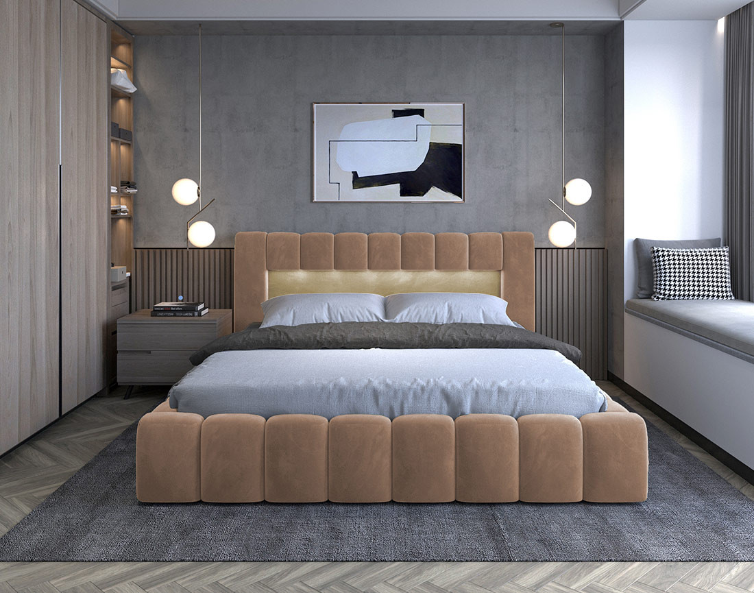 Design moderne et confort sensoriel avec tête de lit LED et velours doux