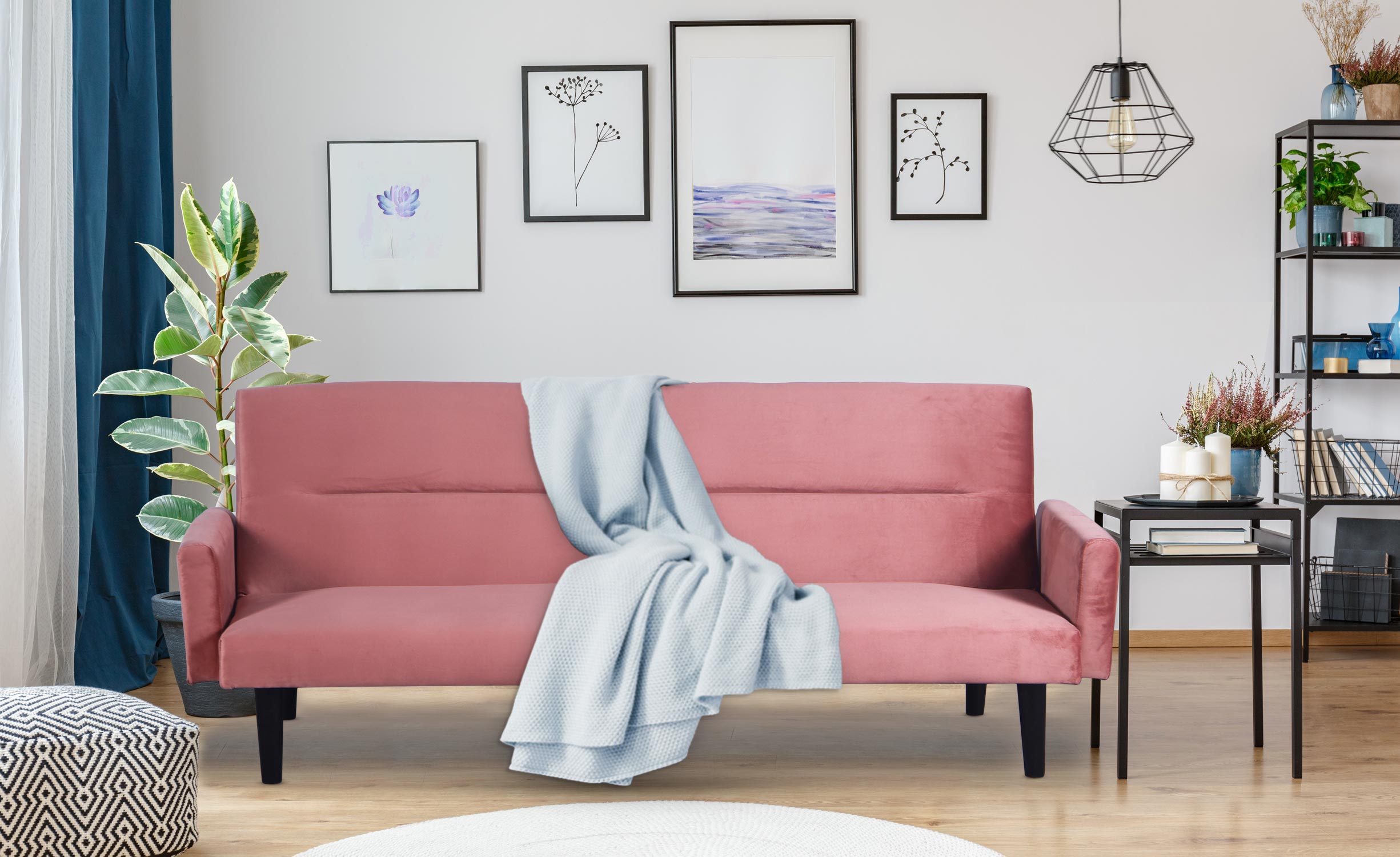 Cette banquette clic clac moderne de couleur rose de la collection Bost pour un couchage pour 2 personnes vous procurera un excellent confort.
