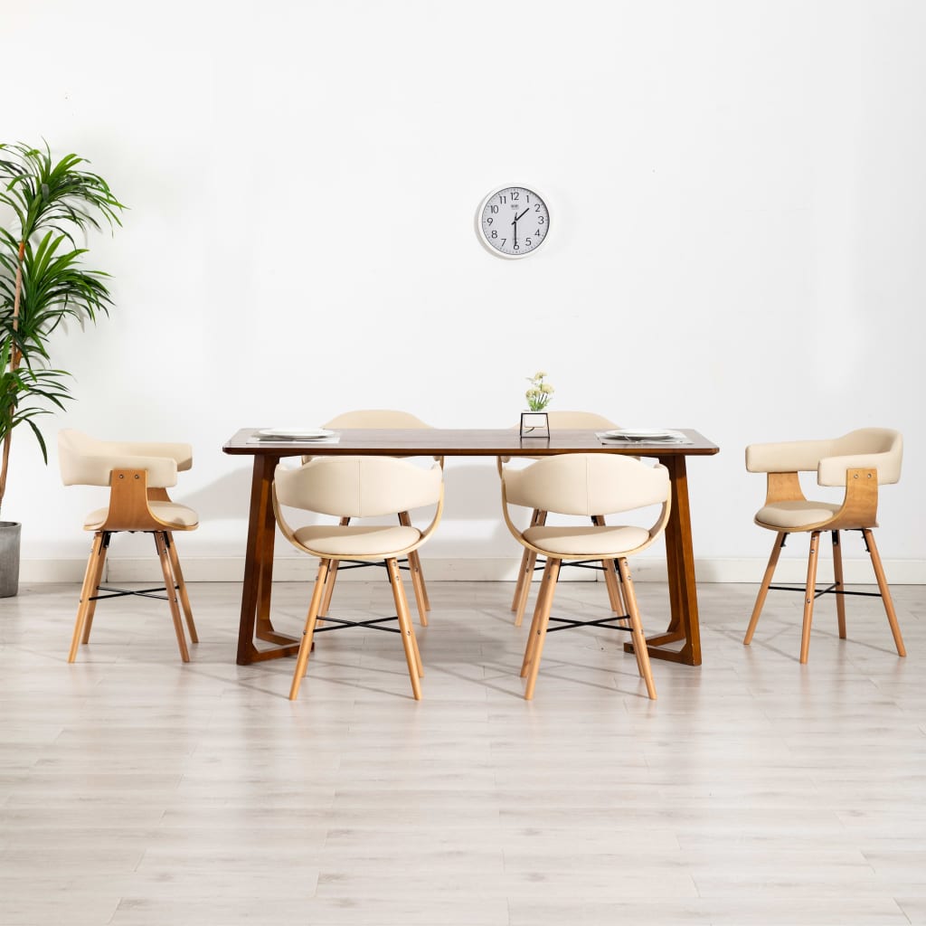 Clicnbuy - Chaises de cuisine - Chaises de salle à manger 6 pcs Crème Similicuir et bois courbé