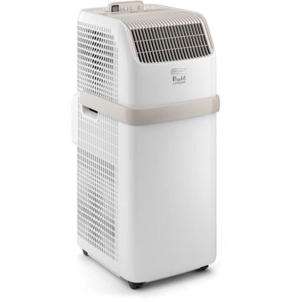 Le climatiseur mobile PAC ES72 de DELONGHI est un modele compact et éco-responsable. Il dispose d'une capacité de refroidissement maximale de 8 300 Btu/h et d'une puissance frigorifique de 2100 W. Il est équipé d'une fonction ventilateur et d'une fonction déshumidificateur avec une humidité supprimée de 21L/24h.