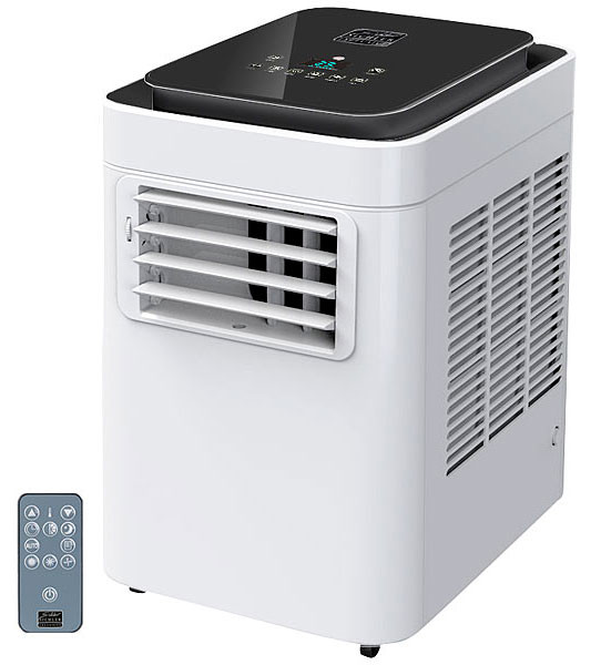 Ne laissez pas la canicule vous abattre. Avec ce climatiseur mobile ACS-90, profitez d'un climat frais partout où vous allez ! L'appareil aère, rafraîchit et déshumidifie. Vous luttez contre les climats lourds et les chaleurs oppressantes, comme celles qui précèdent l'orage. Réglez la température selon vos envies, pour un climat adapté à vos besoins. Grâce au minuteur, vous pouvez même programmer l'appareil de manière à ce qu'il s'active à votre arrivée ou s'éteigne pour votre départ ! Équipé de roulettes, l'appareil peut être déplacé en toute simplicité d'une pièce à l'autre. Vous pouvez même l'emmener dans votre chambre. Grâce au tuyau fourni séparément, vous pouvez installer le climatiseur en extérieur et ne profiter que de son air frais, sans bruit. Climatiseur mobile ACS-90 par Sichler Exclusive Température de refroidissement 17 - 30 °C Classe d'efficacité énergétique : A (EER 2,6), 9000 BTU/h Pour pièces jusqu'à 18 m² / 45 m³ Sélection du programme et de la température sur panneau de commandes ou télécommande Options confort : sélection directe de la température cible, minuteur d'activation/arrêt pour jusqu'à 24 h de fonctionnement, ventilateur à 3 vitesses Affichage LED sur panneau de commandes pour programme sélectionné et température réglée Système d'auto-évaporation : l'eau condensée refroidit le condenseur Déshumidification de l'air de la pièce : jusqu'à 24 L/j Poignée et roulettes pour utilisation mobile Tuyau d'évacuation flexible (longueur max. : 200 cm, Ø 13 cm) à fixer au mur ou à glisser dans une fenêtre entrouverte Adaptateur pour tuyau pour ouverture ovale : 7,2 x 20,8 cm Capacité max. de refroidissement : 2600 W Débit d'air max. : 5,17 m³/min Grille de sortie d'air réglable Volume sonore en fonctionnement : 65 dB(A) Fluide frigorigène : R290, 240 g Puissance absorbée en fonctionnement : 1000 W, veille : 0,5 W Consommation en mode Refroidissement : 1 kWh / 60 min* Rapport de service : 0,048 (m³/min)/W Alimentation système : 230 V, télécommande : 2 piles AAA (non fournies) Dimensions : 44,3 x 81,5 x 34 cm, poids : 27 kg Climatiseur ASC-90, télécommande, tuyau d'évacuation d'air, adaptateur pour tuyau, mode d'emploi en français