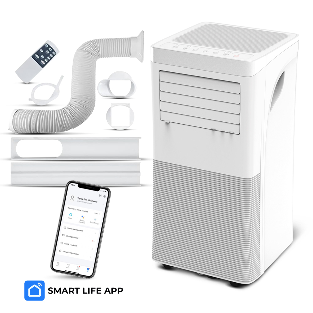 Peu encombrant et facile à déplacer grâce à ses roues, ce climatiseur mobile sera votre allié idéal pour affronter les chaudes journées d'été mais aussi les soirées plus fraîches de l?hiver.Il est adapté aux petites et moyennes pièces comme les chambres, les bureaux...Grâce à son débit d'air de 350m³/H, il assure un rafraichissement efficace et rapide de votre pièce.Possibilité de contrôler le climatiseur depuis votre smartphone via l'application Smart Life qui est aussi compatible avec Google Home, Alexa et IFTTT.Grâce à son design moderne et épuré, il s'intègre parfaitement à tout type de décoration intérieure.