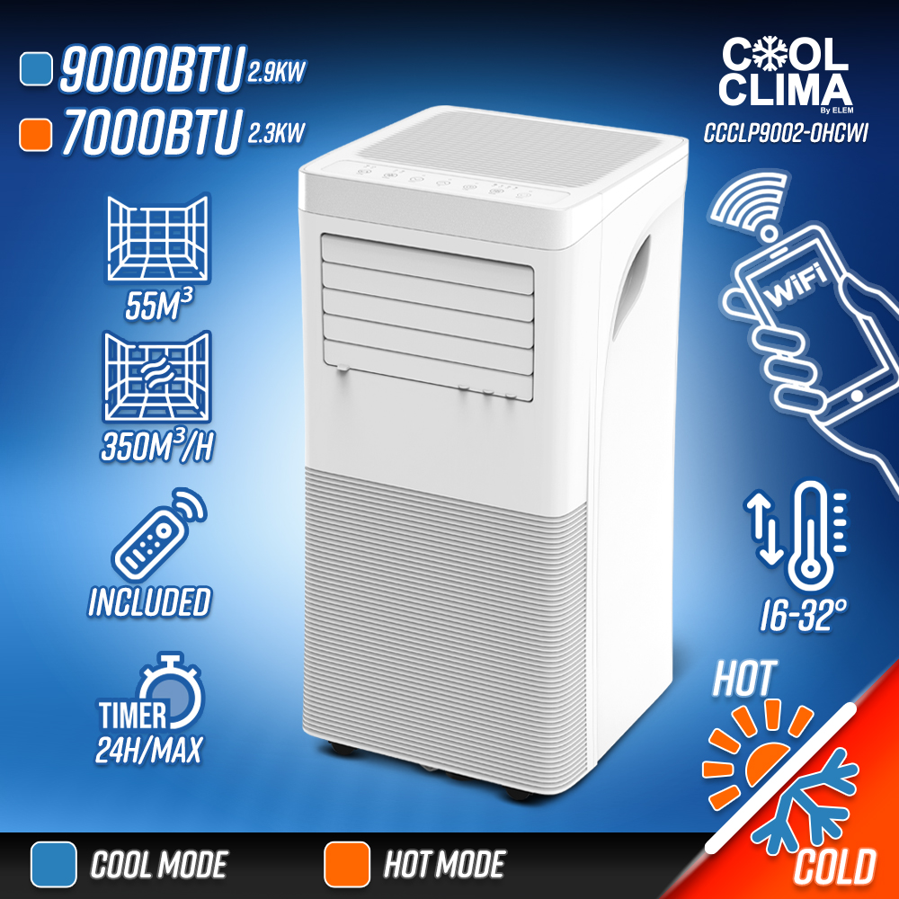 Climatiseur mobile réversible chaud/froid 9000BTU - 2.9KW avec télécommande et fonction Wifi