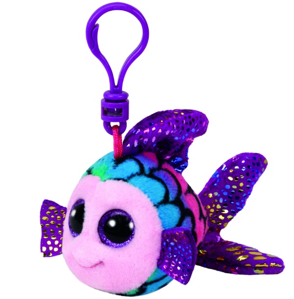 Porte clé Ty modèle poisson multicouleur. Photo non contractuelle, clip en métal.