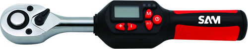 Ce cliquet dynamométrique de la marque Sam Outillage est doté d'un avertisseur sonore et visuel une fois que le couple est atteint. Sa poignée en bi-matière qui est antidérapante garantit sa bonne prise en main même dans les zones inaccessibles. La fonction PUSH permet de bien sécuriser la douille. Pour finir, l'écran digital du cliquet facilite la lecture des données et son utilisation.