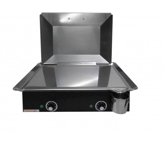 Développées pour notre gamme de planchas CLASSIC, nos cloches de cuisson sont facilement utilisables sur votre plancha électrique inox.En effet, conçue simplement avec un 2 plis sur l'arrière, la cloche se maintiendra en position ouverte sur votre plancha.Sans charnière, elles sont aussi plus simple de nettoyage.Enfin, nos cloches de cuisson pour plancha ont une triple utilité:- En position ouverte pour servir de crédence- Position fermée pour maintenir en température et cuisiner à l'étouffée,- Pour protéger la surface de cuisson des poussières environnantes entre 2 utilisations.