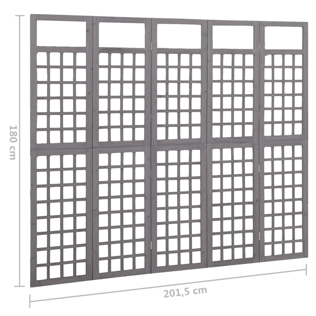 | Libellé | Cloison de séparation à 5 panneaux Bois de pin Gris 201,5x180 |