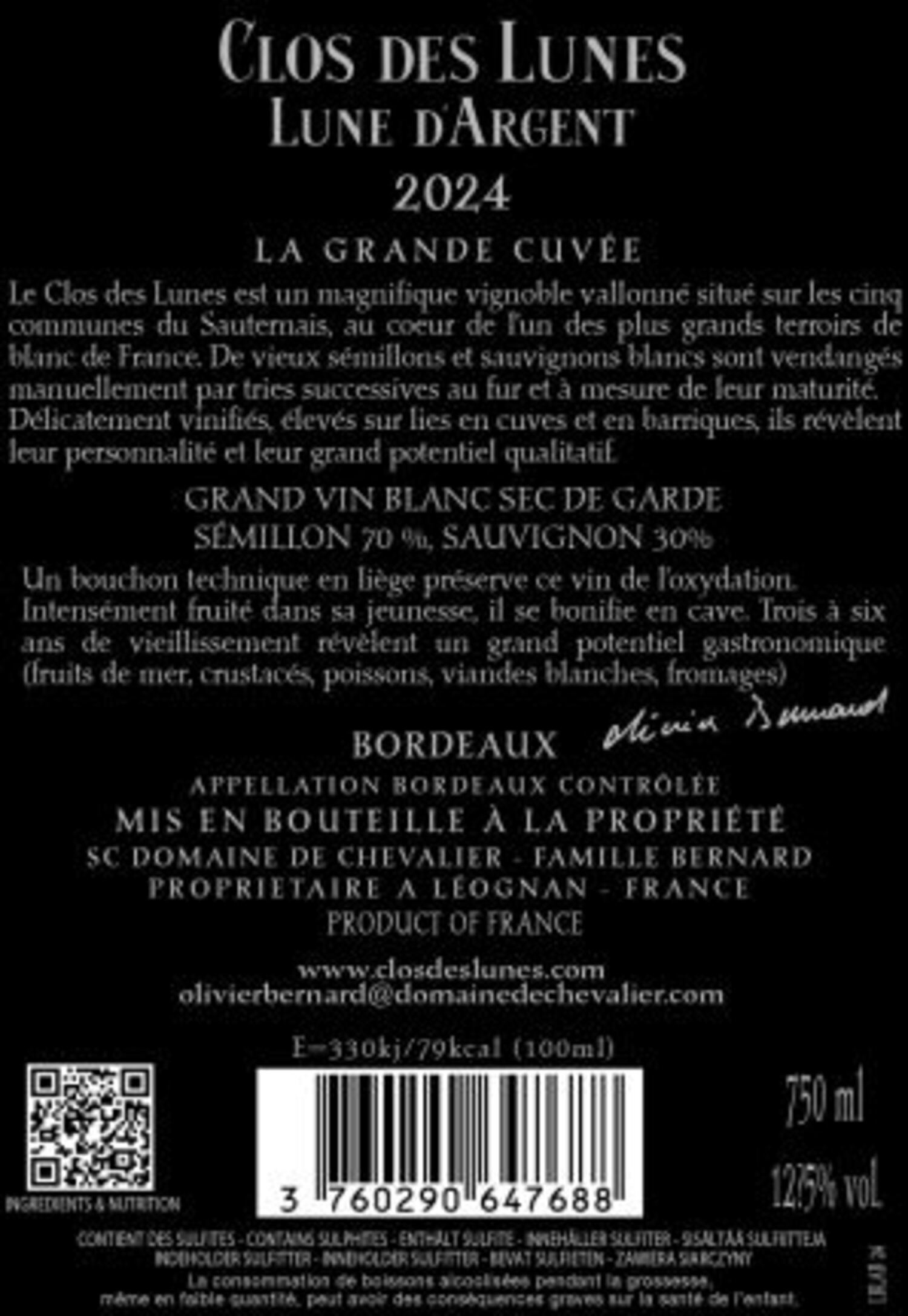 | Libellé | Clos Des Lunes - Lune D'Argent, 2024 - Bordeaux Blanc AOP - Blanc Sec - 75 cl |