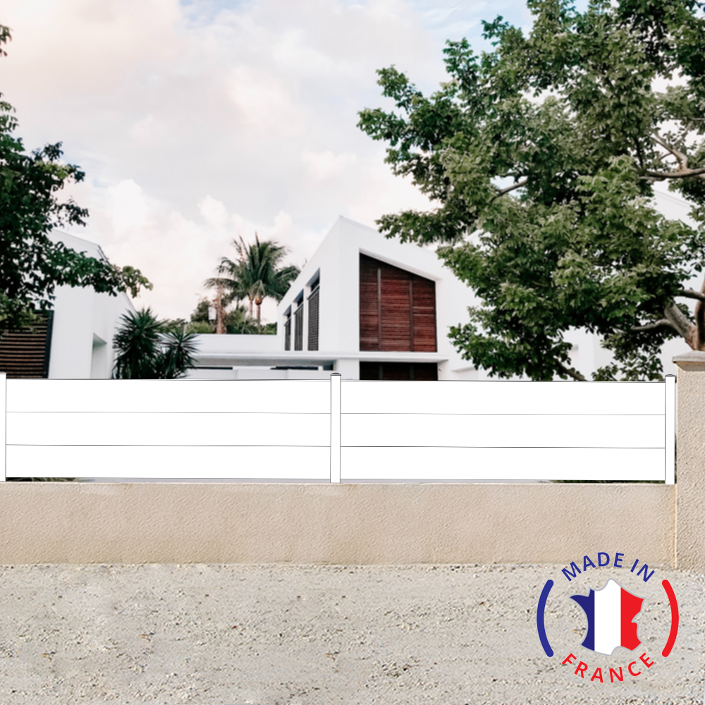 Ce modèle de clôture aluminium 3 lames plein est en 2 éléments. Il vous permet de couvrir une plus grande surface de terrain tout en gardant une belle esthétique d'ensemble.