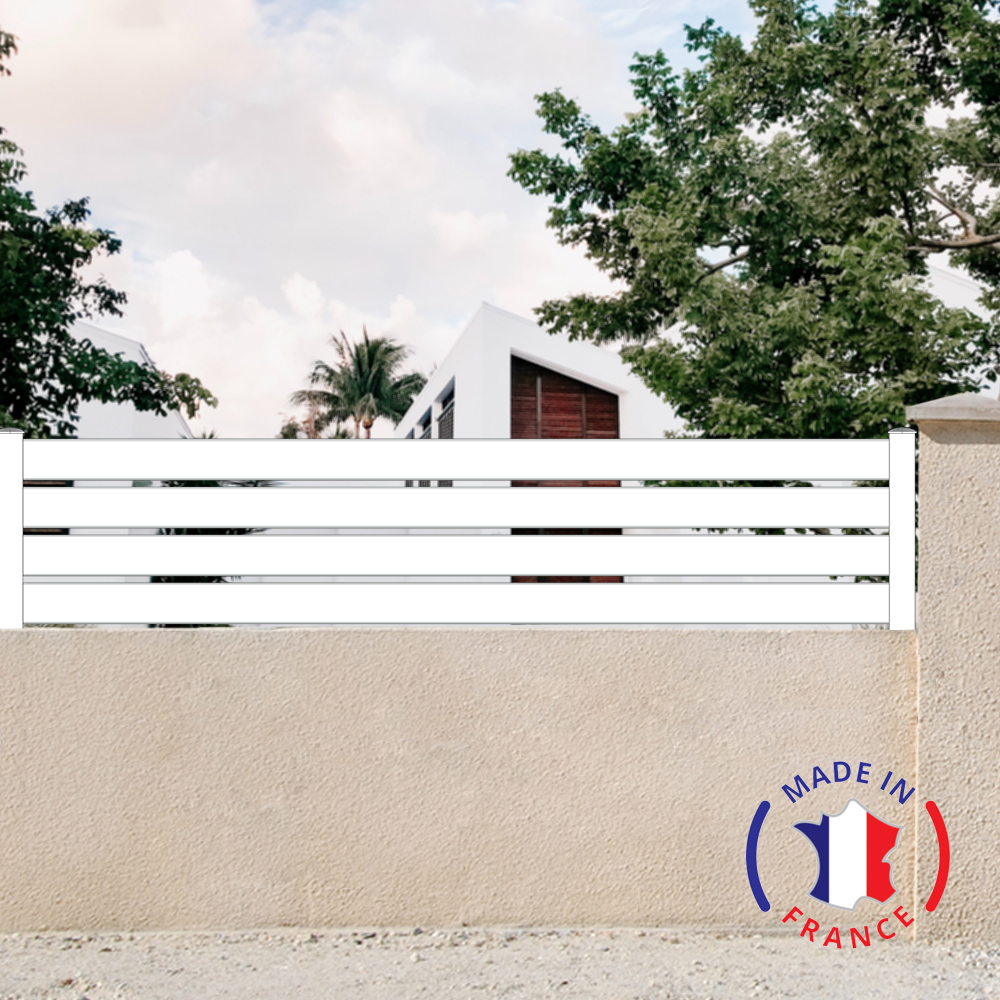 | Libellé | Clôture aluminium 4 lames modèle ajouré en kit s L.2107mm (poteaux compris) X H.455mm couleurs Blanc RAL 9010 |