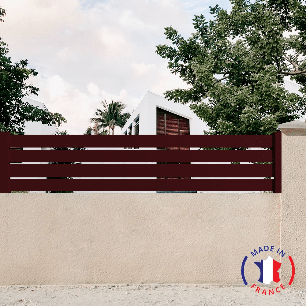 | Libellé | Clôture aluminium 4 lames modèle ajouré en kit s L.2107mm (poteaux compris) X H.455mm couleurs Rouge RAL 3004 |