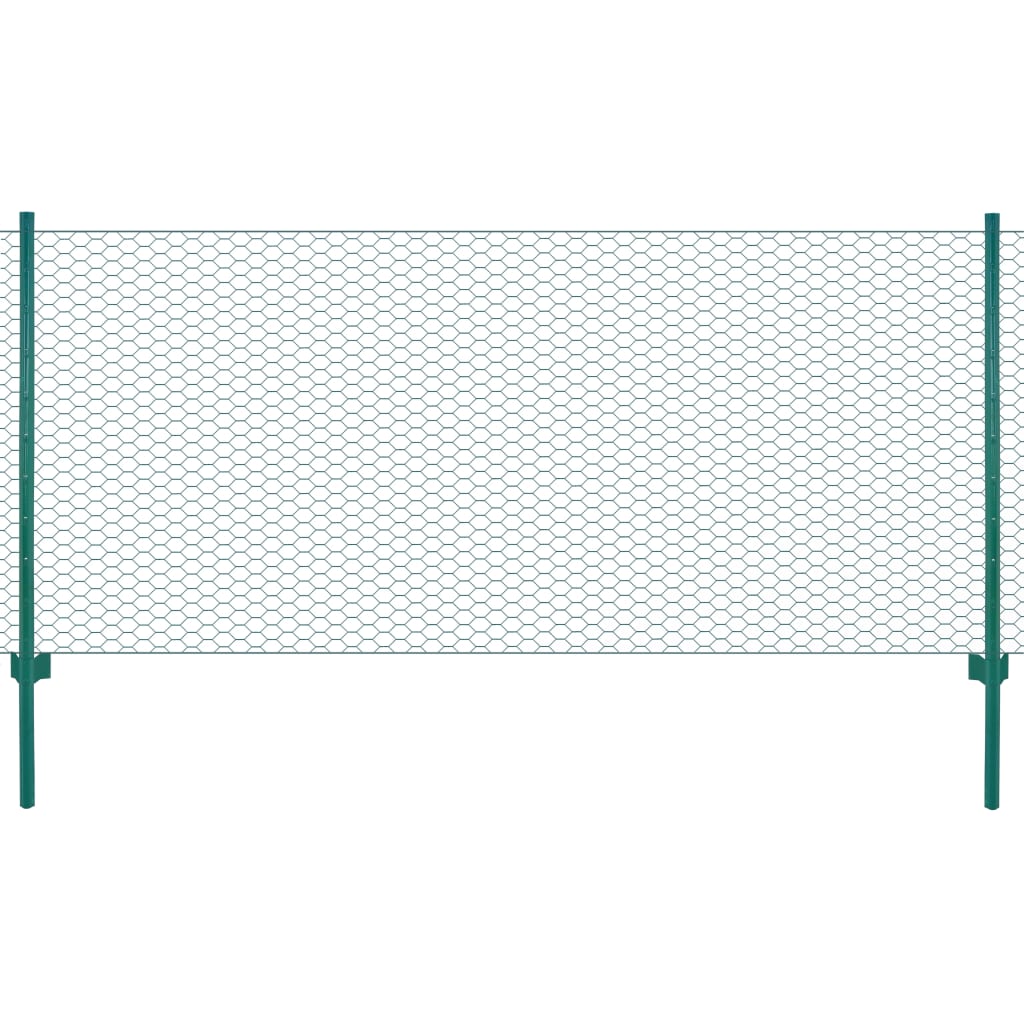Clôture en grillage métallique avec poteaux Acier 25x0,5 m Vert