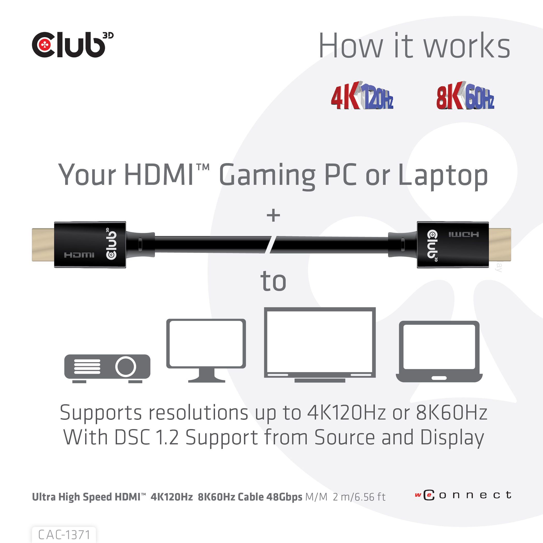 Libellé CLUB3D Ultra High Speed HDMI 4K120Hz, 8K60Hz Certified Cable 48Gbps M/M 1 m/3.28 ft