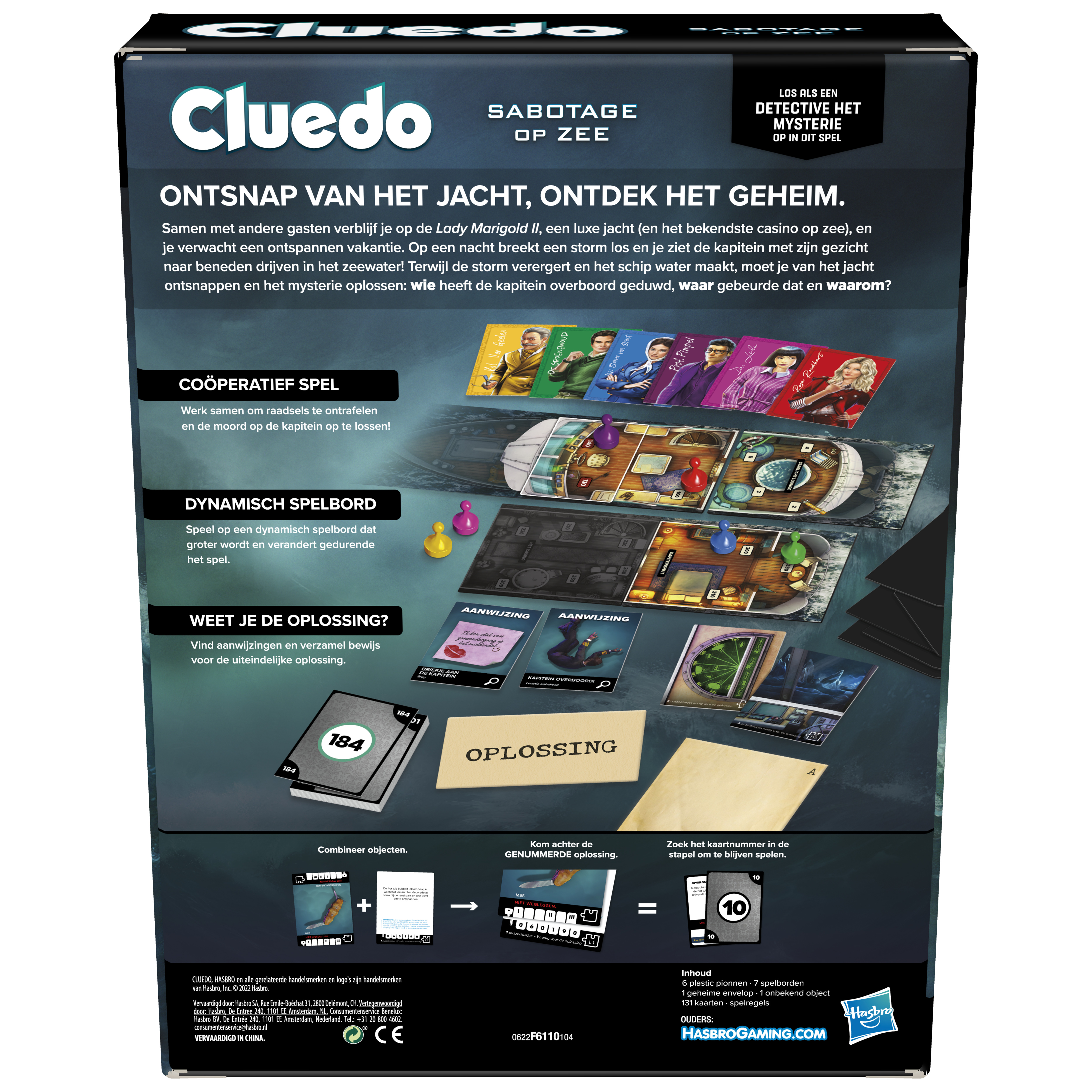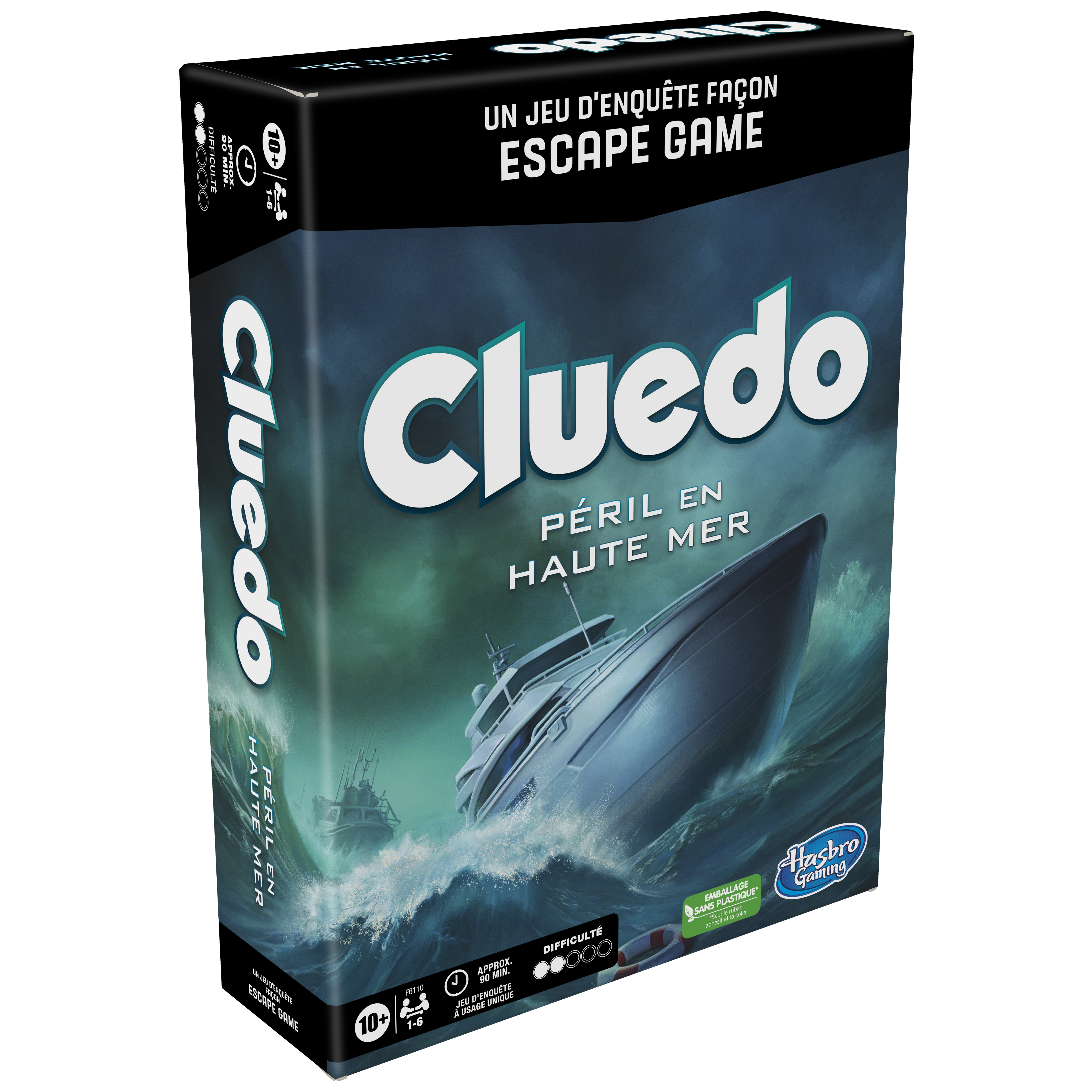 Les joueurs ont accepté une invitation pour des vacances tous frais payés à bord du Lady Marigold II, le yacht luxueux du capitaine Melville, qui abrite un casino particulièrement prisé. Un soir, alors que la tempête approche, quelqu'un aperçoit le corps du capitaine qui flotte à quelques mètres du bateau ! Tandis que le bateau prend l'eau, les joueurs sont mis à l'épreuve : ils doivent faire équipe pour s'échapper du yacht et déterminer qui a poussé le capitaine par-dessus bord, où est-ce arrivé sur le yacht, et pour quel motif. Ce jeu de plateau Cluedo Péril en haute mer est un jeu d'enquête façon Escape Game qui combine l'intrigue et les personnages du jeu d'enquête Cluedo classique à un jeu de type escape room. Les joueurs déplacent leurs pions sur un plateau de jeu qui se construit et se modifie au fil de la partie, piochant des cartes et révélant des pièces du yacht et des indices dont ils auront besoin pour résoudre les énigmes. Après s'être échappés, les joueurs examinent les indices et utilisent la déduction pour porter leur accusation et gagner la partie ! Ce jeu d'évasion immersif ne pouvant être jouée qu'une seule fois est conçu pour 1 à 6 joueurs (à partir de 10 ans). Un cadeau idéal pour les fans du jeu Cluedo original et des jeux de meurtre et mystère. Hasbro Gaming et toutes les marques et logos associés sont des marques de commerce de Hasbro, Inc.