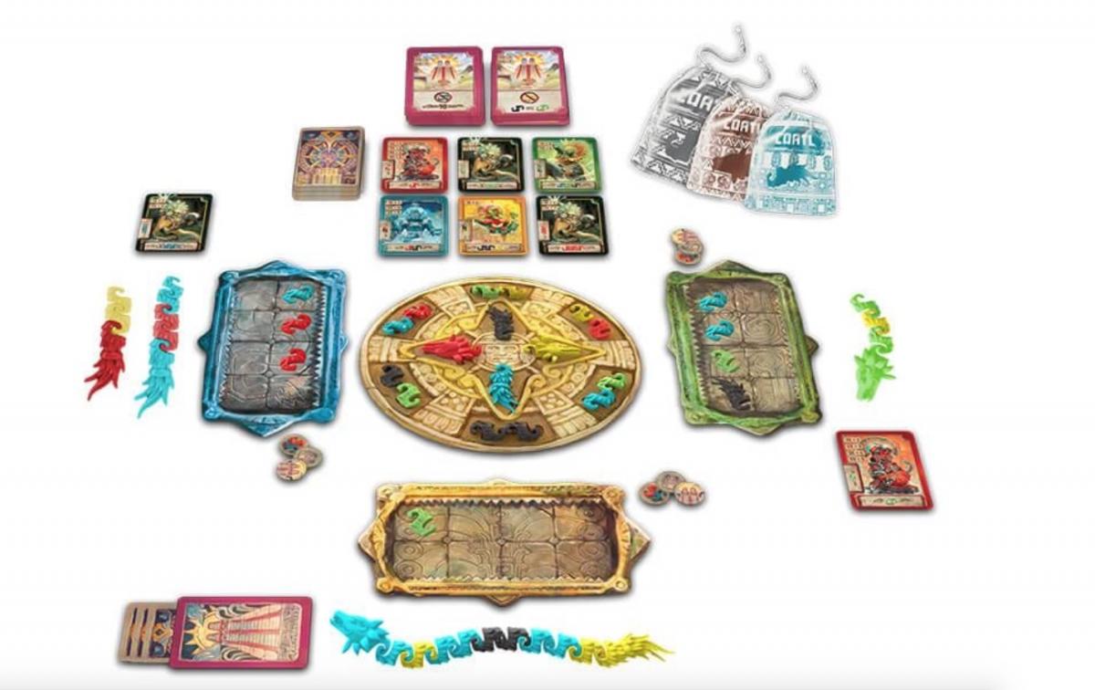 à partir de 10 ans 30 min à 1 heure 1 à 4 joueur(s)L'élection au titre de grand prêtre aztèque est imminente. Afin de prouver leur valeur et leur mérite, les prétendants s'engagent dans une course au prestige pour conquérir la faveur des dieux. Saurez-vous réaliser les plus belles sculptures de serpents à plumes (appelés Cóatl) pour vous démarquer et ainsi accéder au titre tant convoité de grand prêtre aztèque?Dans Cóatl, les joueurs construisent les plus beaux et précieux serpents à plumes qui soient. Ces reptiles, appelés Cóatl par les Aztèques, sont construits d'une tête, une queue et un certain nombre de pièces de corps en plastique épais et coloré. À tour de rôle, les joueurs prennent les pièces du plateau central et les transposent sur leur plateau personnel afin d'assembler stratégiquement des Cóatls en fonction des couleurs édictées par leurs cartes d'objectifs.La partie se termine lorsqu'un joueur complète son troisième Cóatl. Les joueurs reçoivent des points pour la réalisation d'objectifs et celui qui en a cumulé le plus est déclaré grand prêtre aztèque!