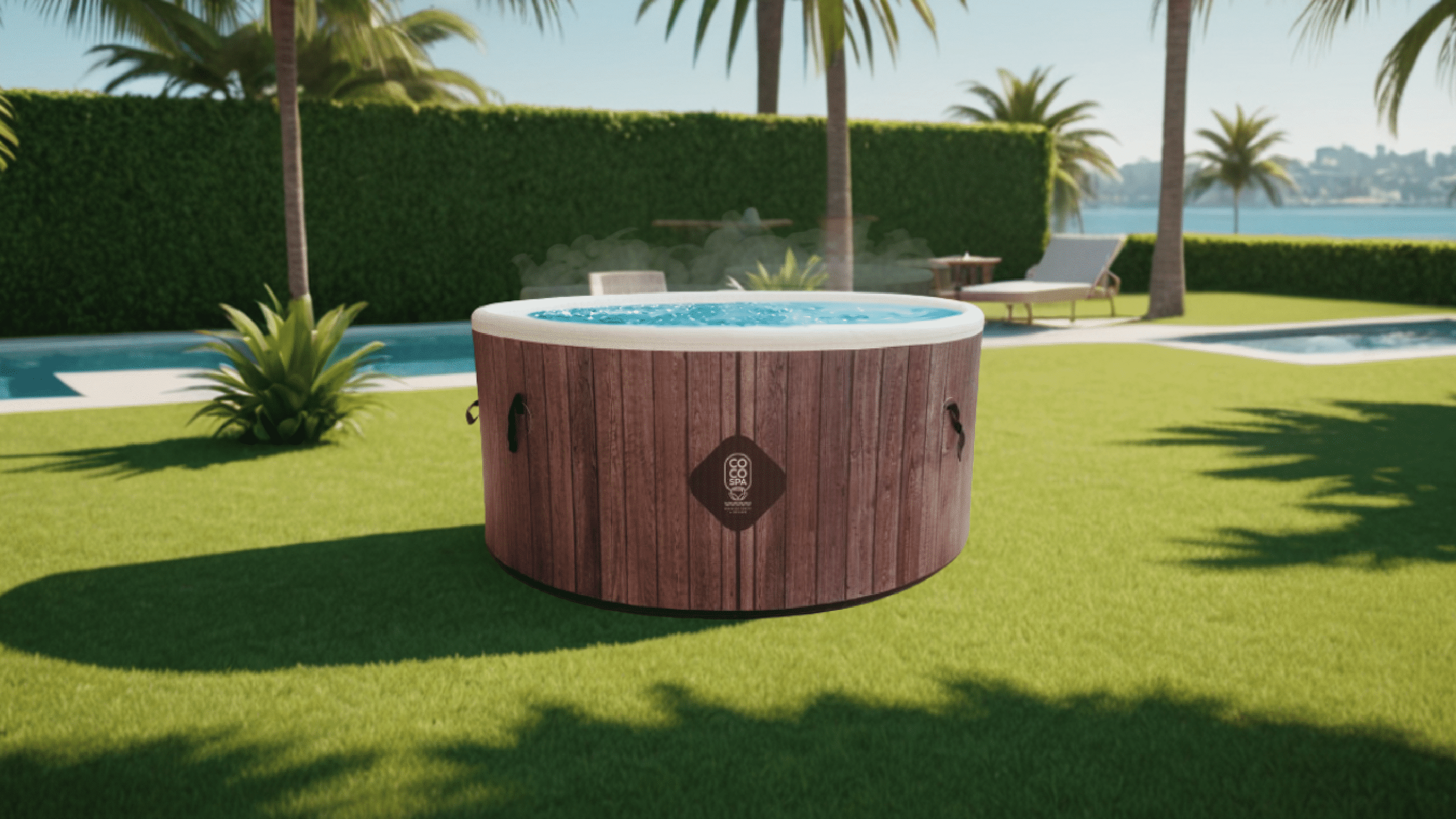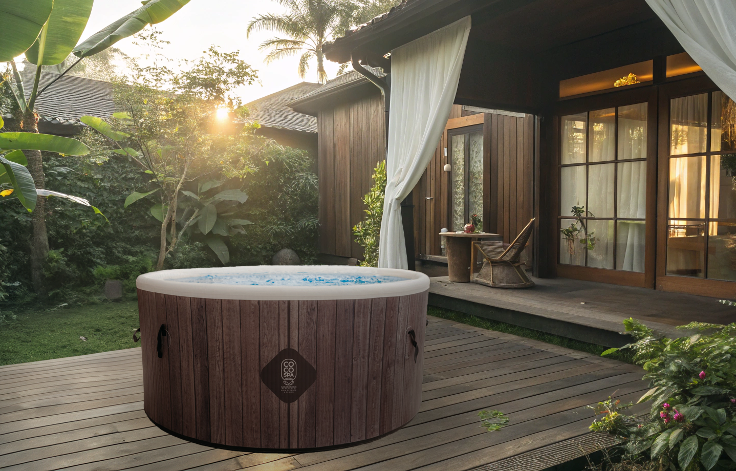 | Plus produit | Ce spa gonflable design et haut de gamme sublimera votre patio ou terrasse avec son imitation bois plus vrai que nature |