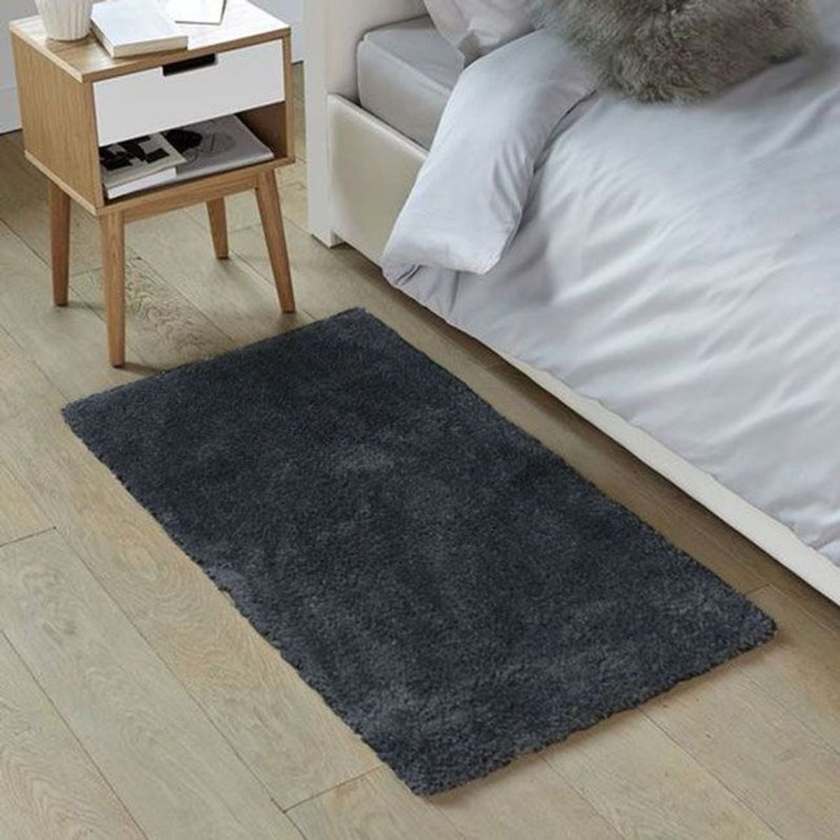 Un superbe petit tapis bleu cendré à la fibre fine, extra douce et lumineuse. Cette descente de lit très tendance, sera parfaite pour embellir votre chambre.