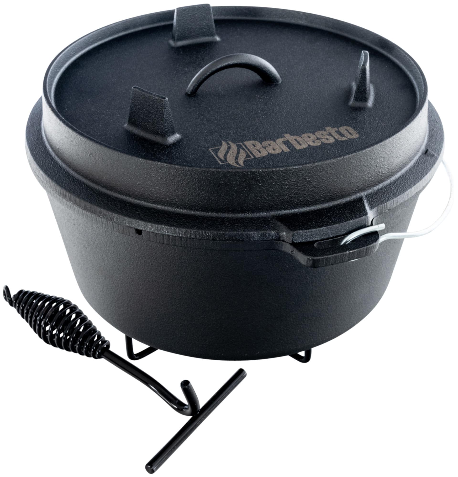 Grâce à son matériau, le Dutch Oven est idéal pour une utilisation à haute température. La fonte est extrêmement durable, répartit la chaleur uniformément et la maintient longtemps. Cette cocotte en fonte a une forte isolation thermique. De plus, les aliments n'adhèrent pas à la surface, même si aucun revêtement anti-adhesif, généralement extrêmement chimique, n'est utilisé dans la fabrication de ce faitout qui dispose d'un couvercle, unse anse, un lève-couvercle et une base. Le couvercle peut également être utilsé comme poêle à part. Il suffit de le mettre sur les trois pieds et y disposer vos aliments à cuire ou à griller.