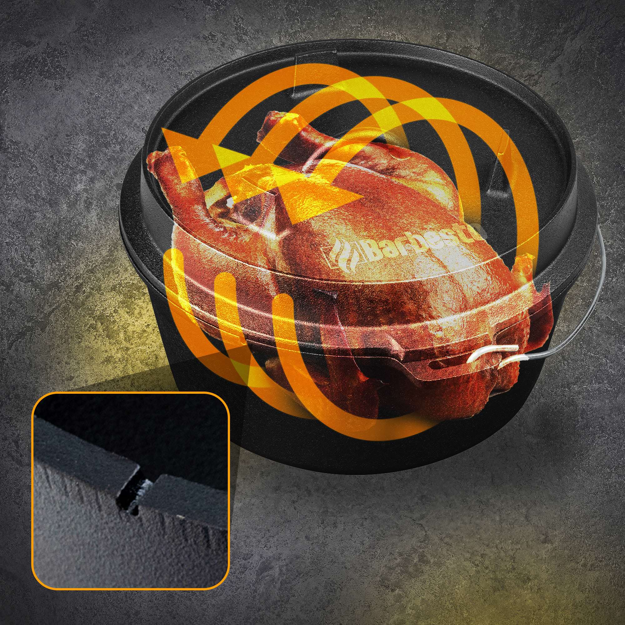 En plus de pouvoir être utilisé au four, sur la cuisinière ou sur la plaque vitrocéramique, ce faitout peut également être utilisé sur un feu ouvert ou debout directement dans le feu pour préparer de délicieux plats. La base incluse peut également être utilisée pour cela, ou le pot est simplement suspendu au-dessus du feu grâce à l'anse. Comme il n'y a pas de contact direct entre les aliments et le feu, aucune graisse ne peut s'égoutter dans les braises et aucune substance nocive ne viendra toucher vos aliments.