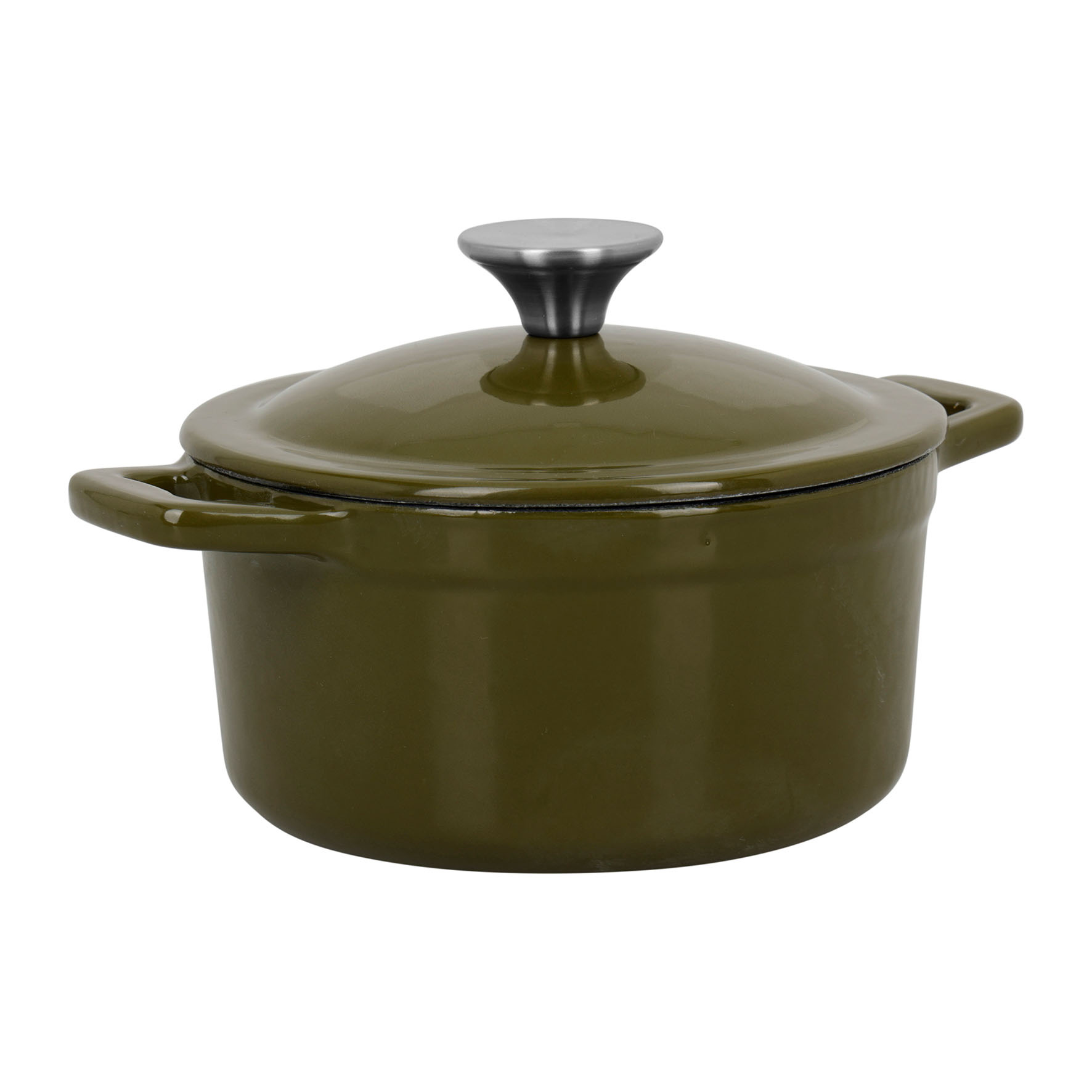 Mini cocotte Fonte d'acier Forme ronde Ø 14.5 cm Revêtement intérieur émaillé blanc Coloris Olive