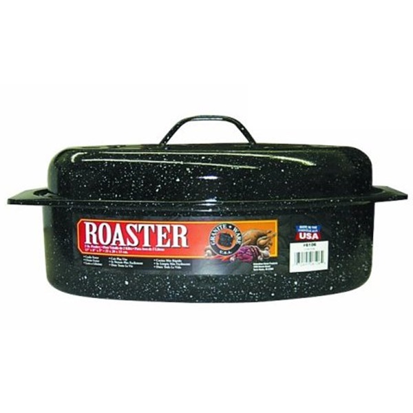 6106 - cocotte ovale en acier carbon 33x20cm - La cocotte / Roaster 6106 GRANITEWARE de chez WARMCOOK est le modèle original fabriqué au USA, son corps est en acier carbone pour un poids plume facilitant les manipulations, le nettoyage et une parfaite distribution de la chaleur.