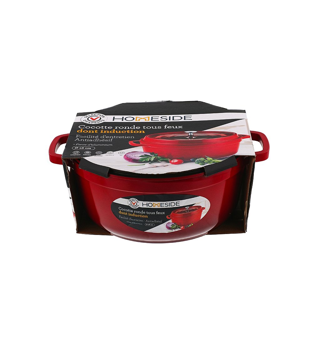 | Libellé | Cocotte ronde ø 28cm - Sélection d’Experts - Homeside - tous feux dont induction - revêtement intérieur anti-adhésif - rouge |
