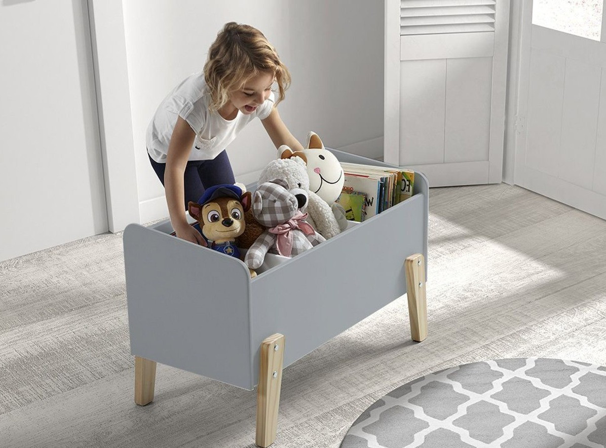 Coffre à jouets laqué gris et pieds bois clair Kiddy