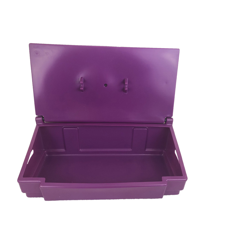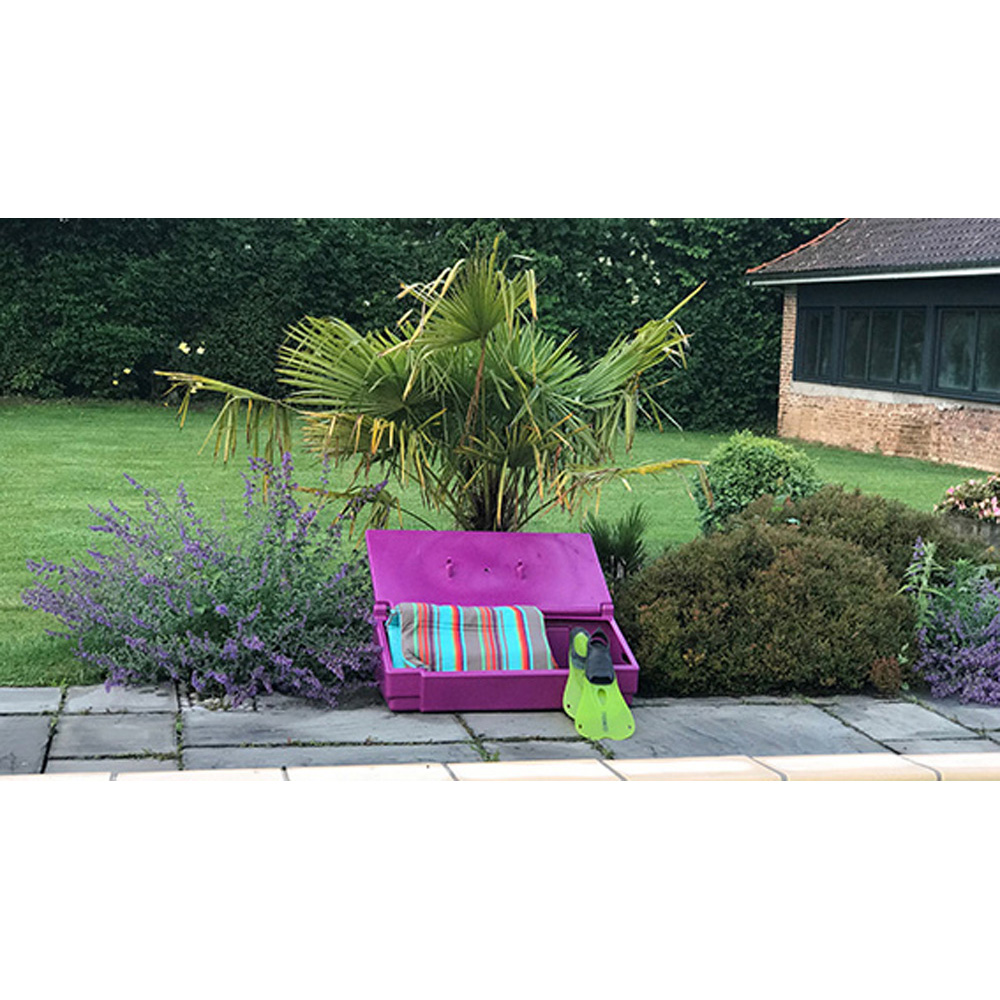 Capacité : 50L. Longueur : 98 cm_Hauteur : 34 cm_ Largeur : 50 cm._Poids : 9 kg_ Pour stockage d'articles de jardin_ Matière : polyéthylène haute densité _Très résistant aux chocs. plage d'utilisation : -30°C à +60°C_ 100% recyclable_Traité anti UV_Finition lisse_Marque : PLAST'UP ROTOMOULAGE_Fabrication Française