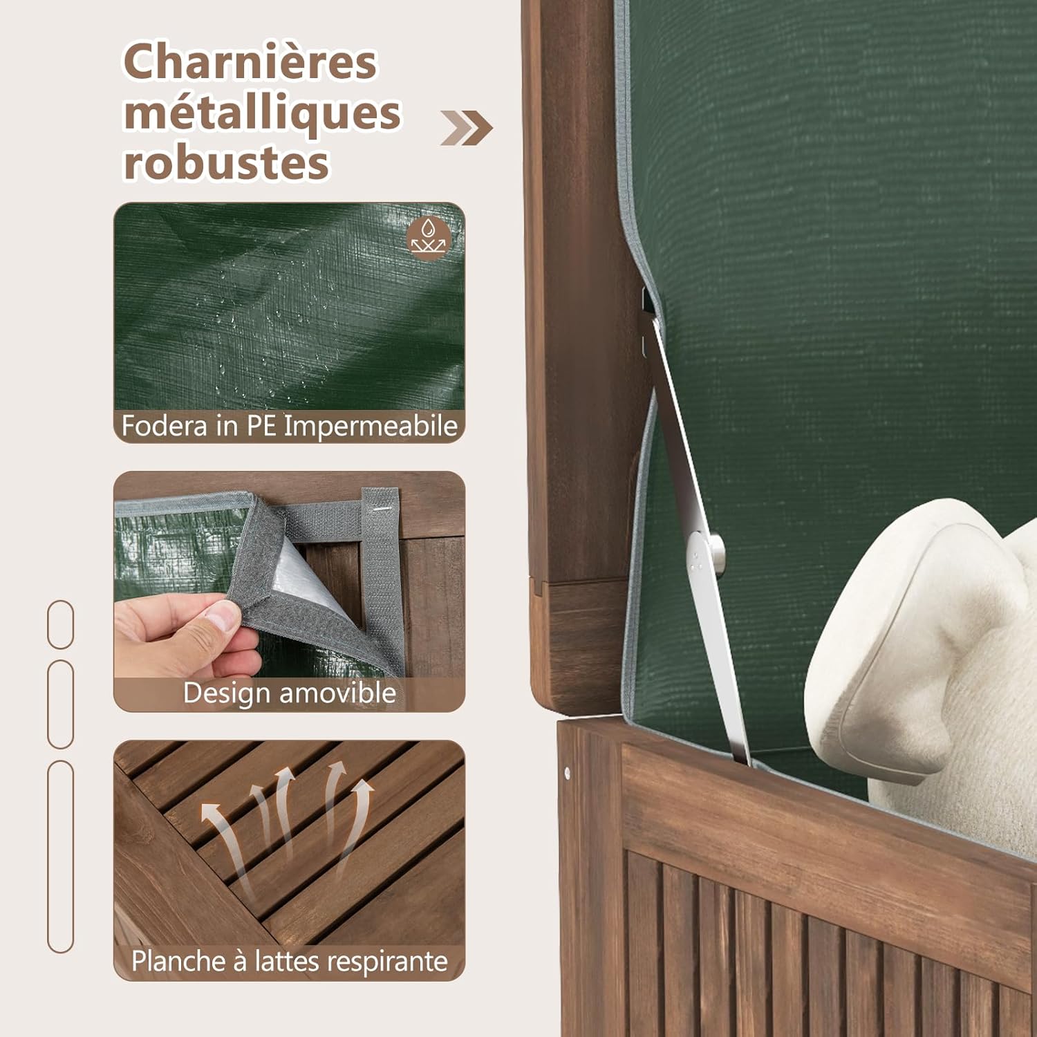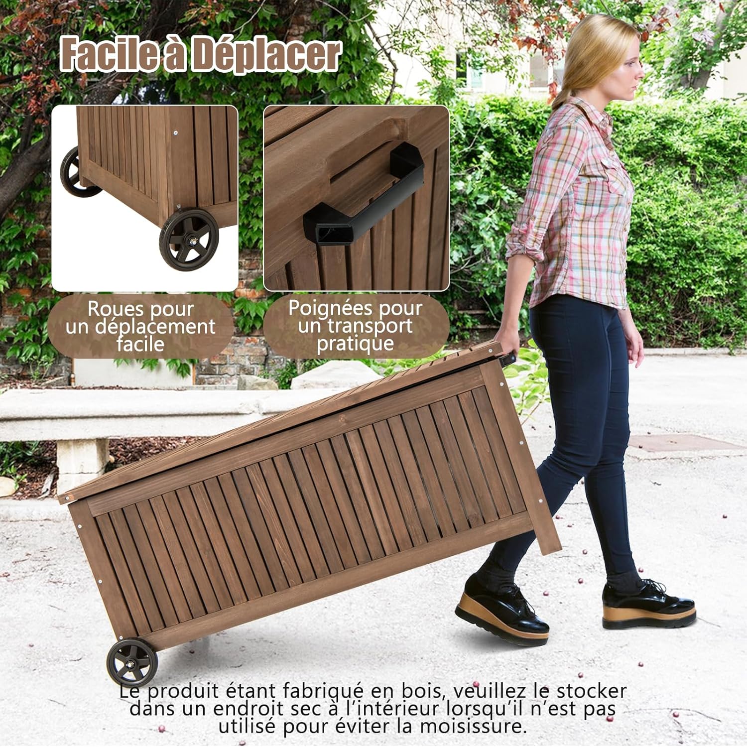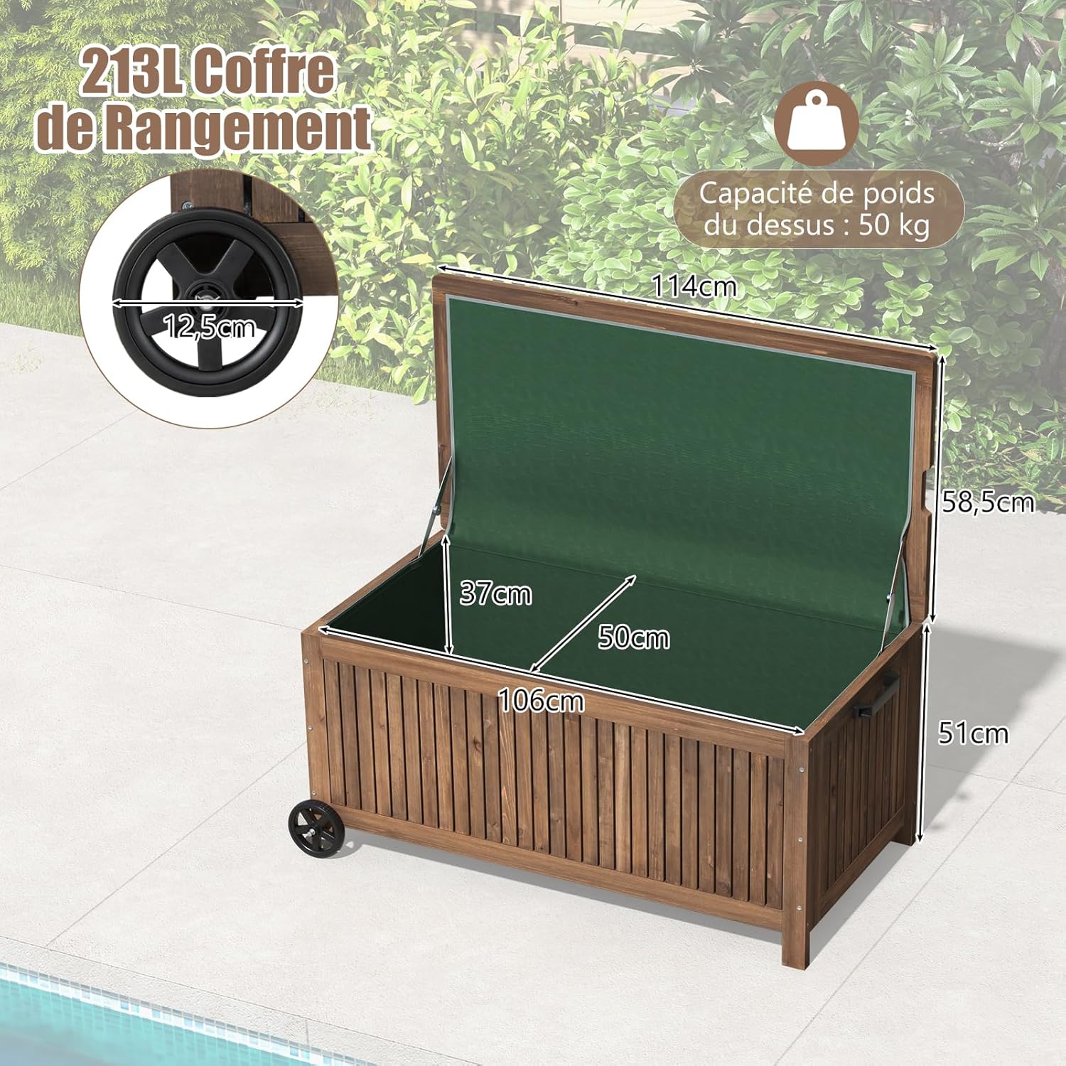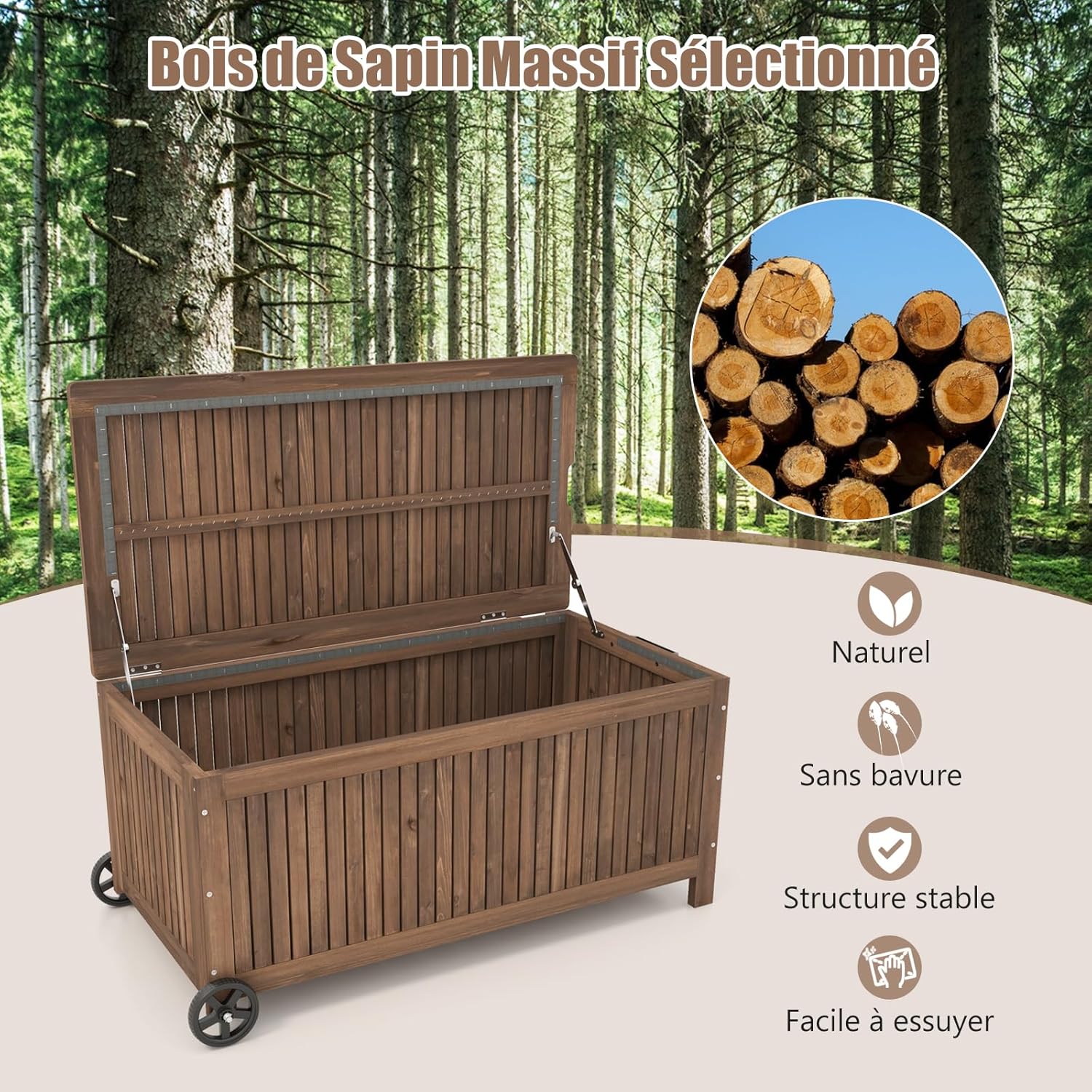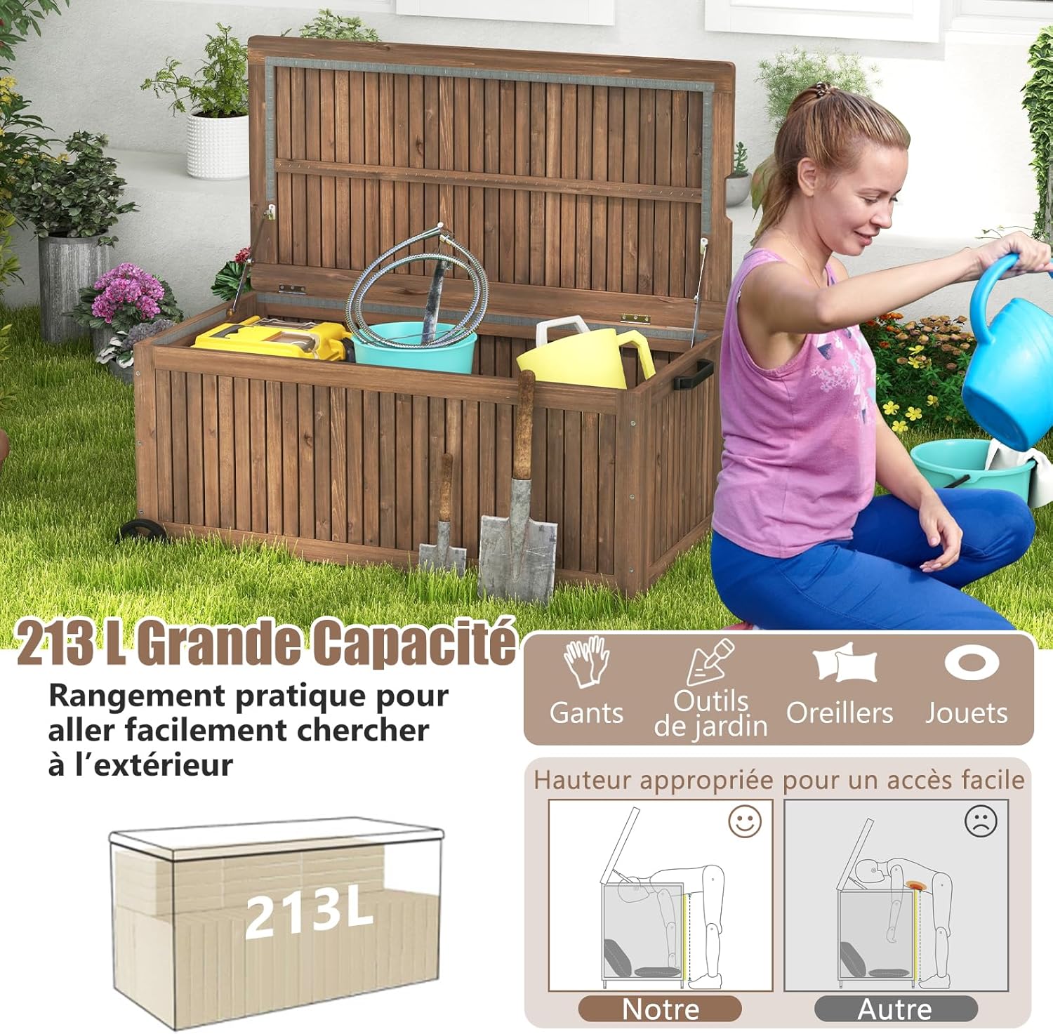 | Libellé | Coffre de jardin en bois de sapin de 213 L, boîte de rangement extérieur avec doublure PE |