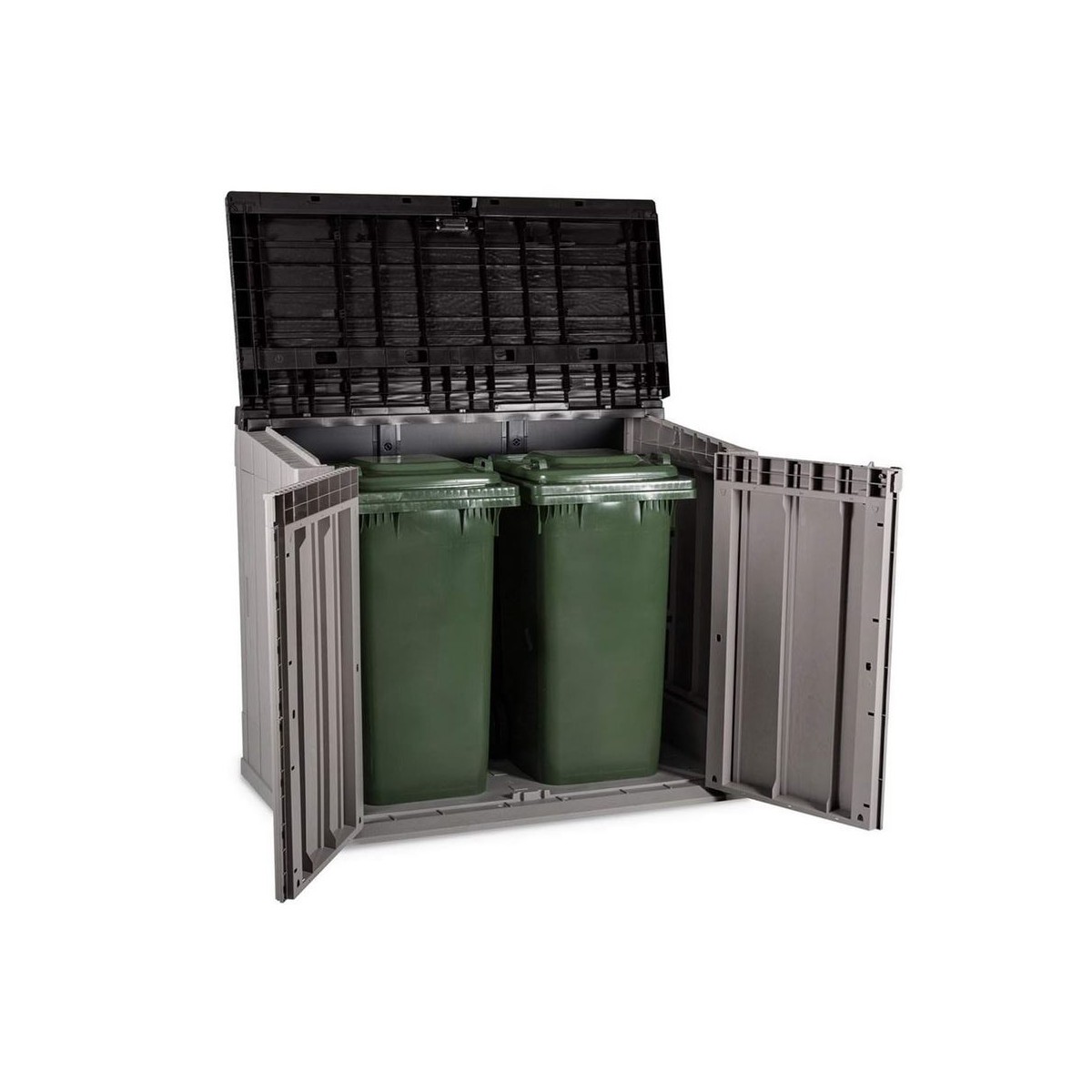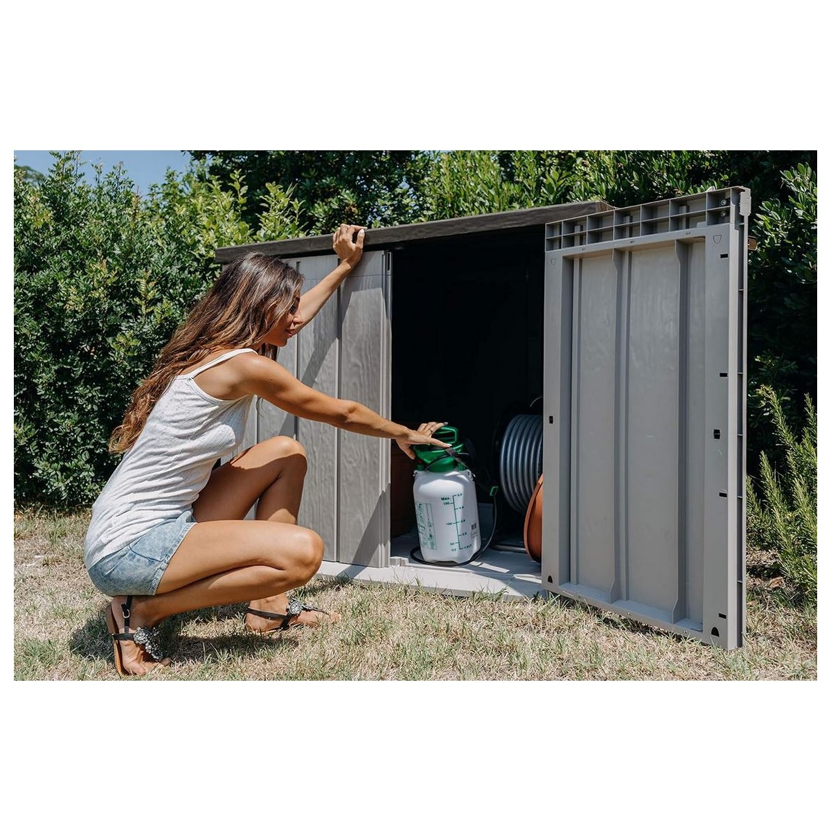 Sa polyvalence de stockage en fait un choix idéal pour non seulement ranger des outils, mais aussi accueillir des transats, des machines équipées de roues, ou même des poubelles allant jusqu'à 120 L (dimensions intérieures utiles : 113,4 x 63,4 x 95,4 cm). Le sol inclus avec rampe facilite le stockage d'objets encombrants, offrant une praticité supplémentaire.
