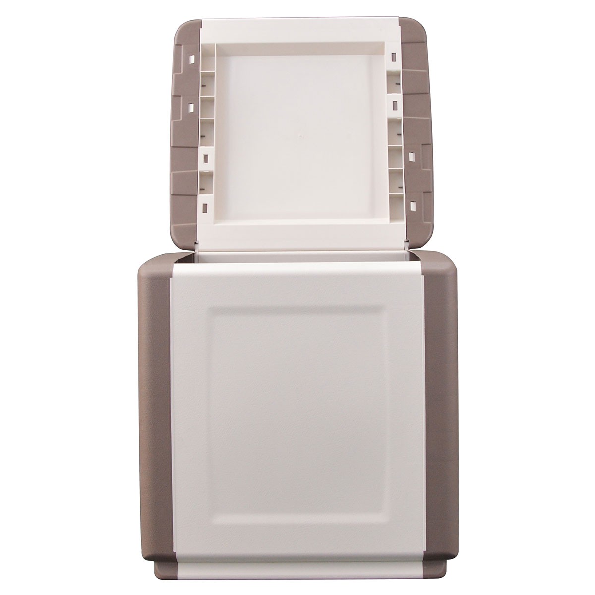 Découvrez la malle de rangement en polypropylène INTEC beige et taupe, pratique et robuste. Avec une capacité de 130 litres, elle est résistante aux intempéries, lavable à l'éponge et facilement transportable grâce à ses poignées. Dimensions : 540 x 530 x H570 mm.