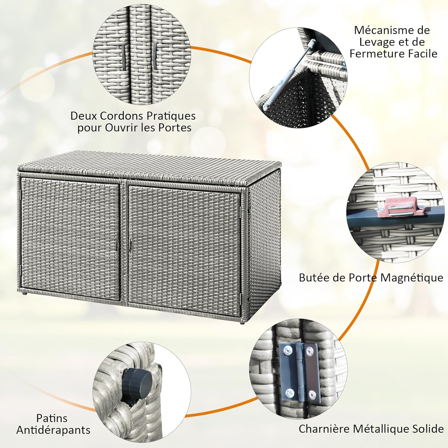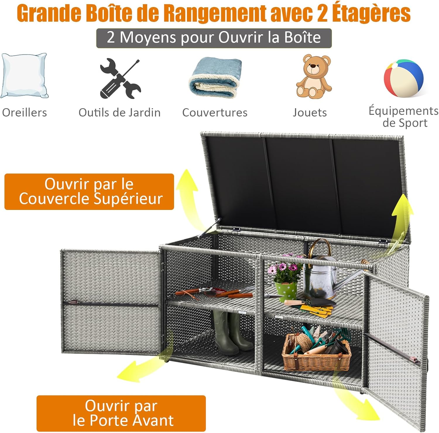 | Libellé | Coffre de rangement en rotin pe avec 2 étagères, boîte de rangement jardin extérieur |