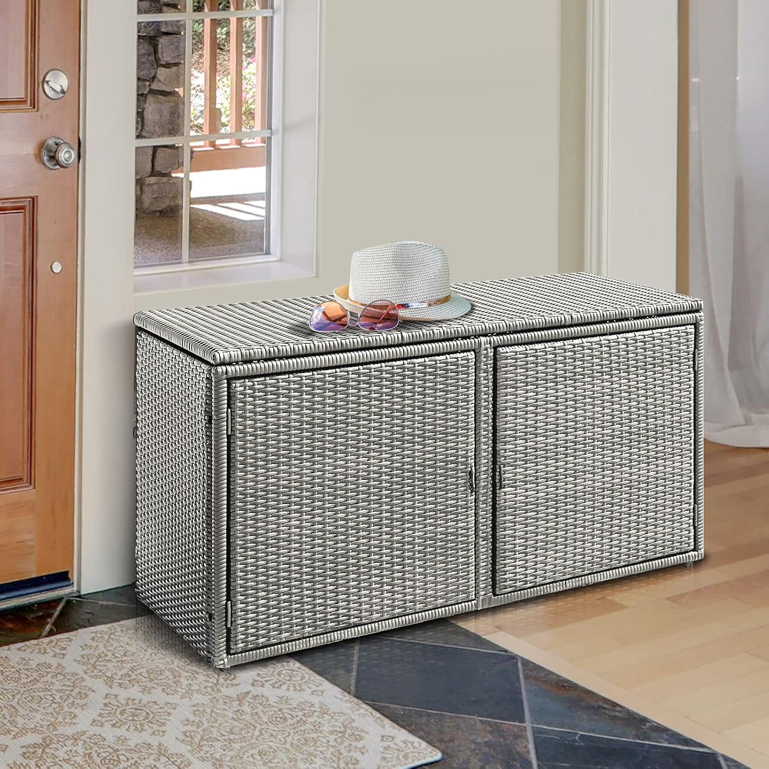 - Matériau Durable & Cadre Robuste : Fabriqué de rotin en PE, le coffre de rangement est résistant aux UV et aux intempéries, vous permettant de le placer à l’extérieur sans le souci de fendillement. En outre, ce cadre de la boîte de rangement est construit de métal robuste, qui n'est pas facilement déformé ou endommagé.