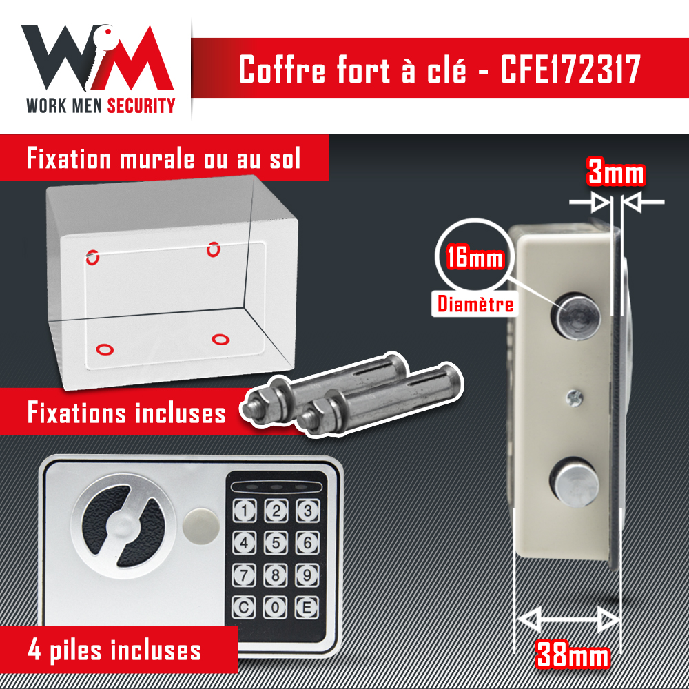 | Libellé | Coffre fort électronique 23x17x17cm - Work Men |