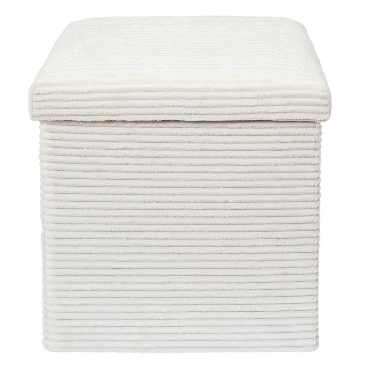 Découvrez ce magnifique coffre de rangement qui fait également office de pouf ! Le modèle est pliable pour s'adapter avec facilité à vos besoins. Son effet côtelé, en plus d'apporter une dimension cocooning à votre intérieur, il ravira les aficionados de douceur !