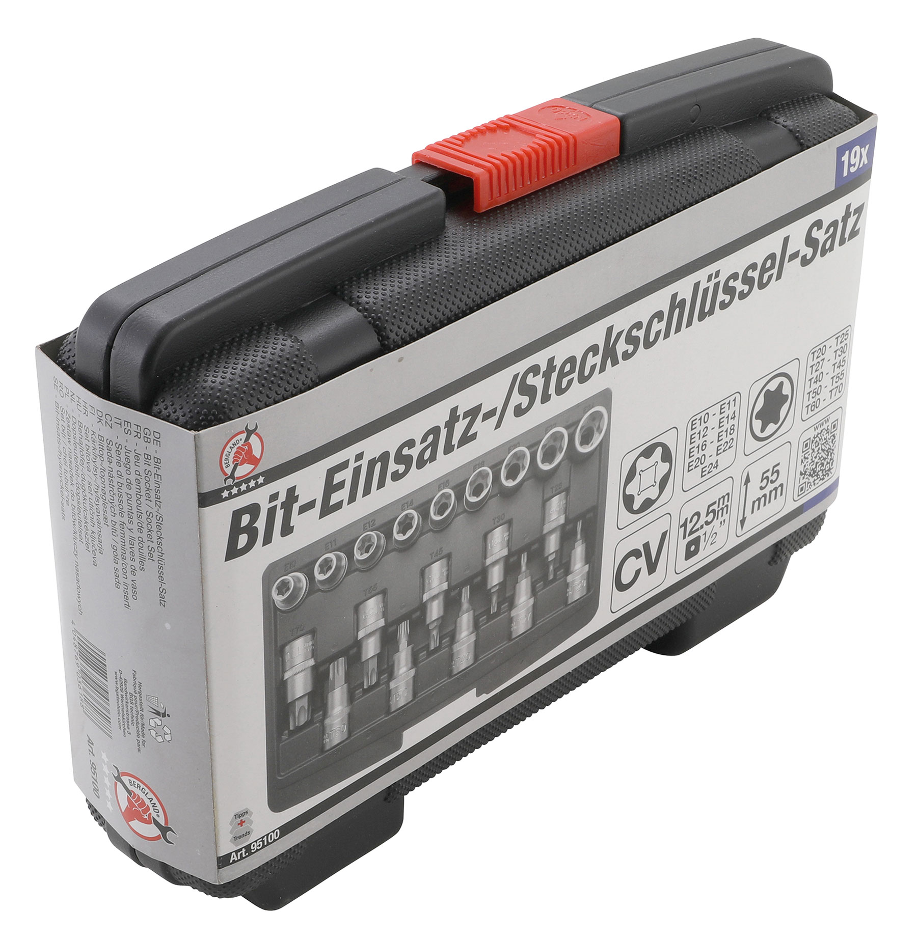 COFFRET 19 EMBOUTS ET DOUILLES TORX MALE T20 A T70 FEMELLE E10 A E24