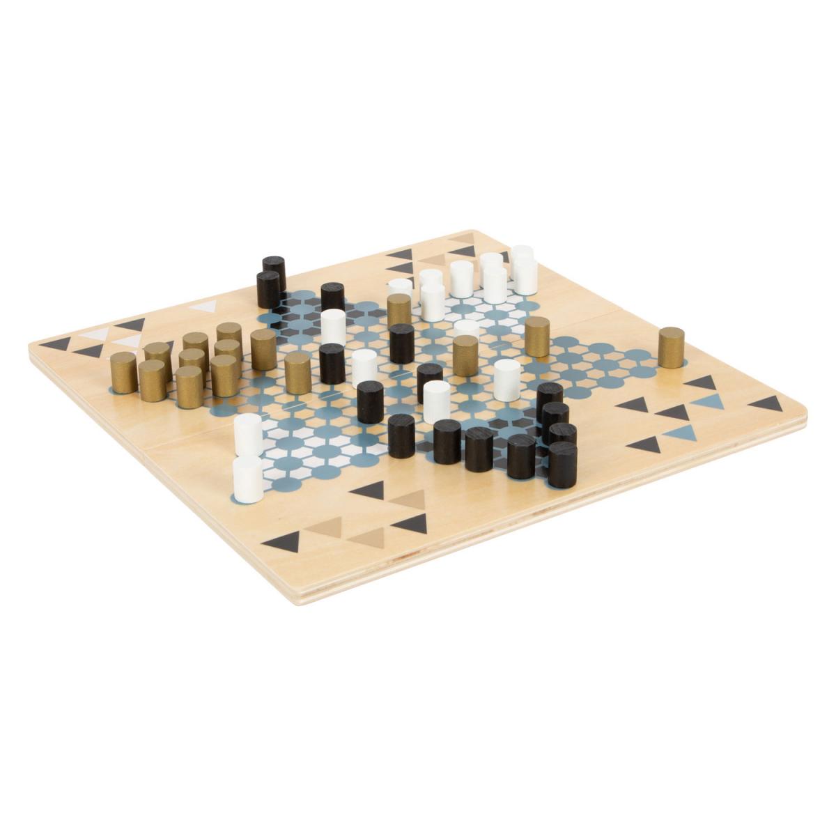 Ce jeu de société 2 en 1 convainc visuellement avec des accents dorés à la mode, un bleu fumé moderne en combinaison avec un simple noir/blanc et beaucoup de bois visible. Le plateau de jeu imprimé avec Halma classique d'un côté et Barricade de l'autre est fait de bois robuste et offre non seulement un double plaisir - il est également divisé en deux pour un rangement peu encombrant ! Des aimants intégrés maintiennent les moitiés du plateau de jeu fermement ensemble. Avec boîte de jeu de haute qualité pour le stockage. Il y a une demande de tactique ! Dans le jeu de société classique Barricade, l'objectif est d'ériger des barrières, d'éliminer les adversaires et de trouver le meilleur chemin stratégique vers l'objectif, même si d'autres joueurs bloquent le chemin vers l'arrivée ! Halma, également connue sous le nom de dames chinoises, est très facile à apprendre et toujours très amusante, que ce soit une belle partie entre amis ou en famille. Les pierres de tige sont utilisées deux fois et servent également de barricades pour le jeu de barricade !