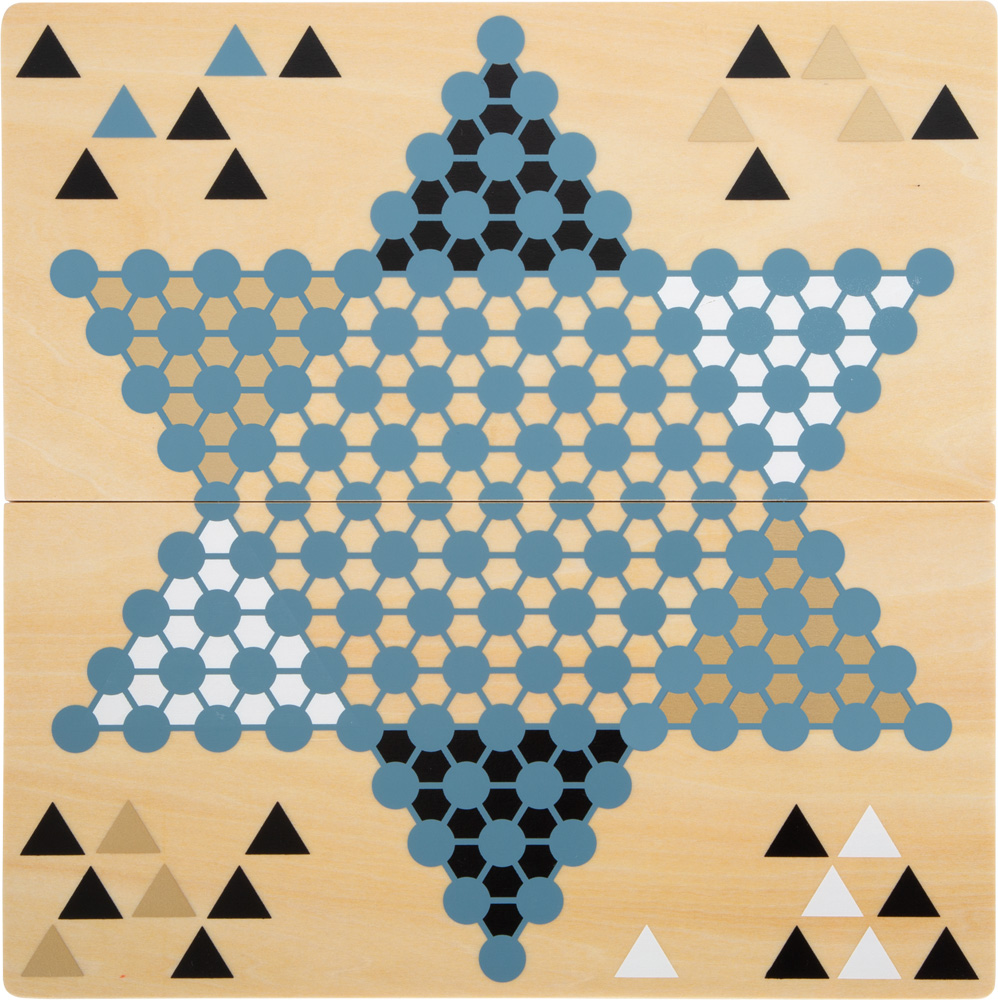 2 en 1 : Le plateau de jeu imprimé des deux côtés avec le jeu halma (dames chinoises)et barricade sont bien reliés par des aimants intégrés.