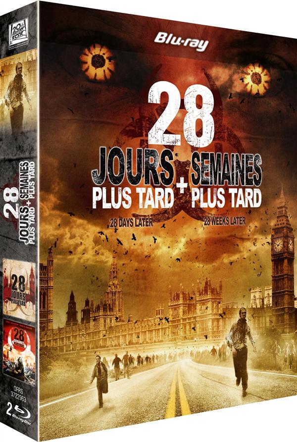 28 jours plus tard : Un commando de la Protection Animale fait irruption dans un laboratoire top secret pour délivrer des dizaines de chimpanzés soumis à de terribles expériences. Mais aussitôt libérés, les primates, contaminés par un mystérieux virus et animés d'une rage incontrôlable, bondissent sur leurs "sauveurs" et les massacrent. 28 jours plus tard, le mal s'est répandu à une vitesse fulgurante à travers le pays, la population a été évacuée en masse et Londres n'est plus qu'une ville fantôme. Les rares rescapés se terrent pour échapper aux "Contaminés" assoiffés de violence. C'est dans ce contexte que Jim, un coursier, sort d'un profond coma... 28 semaines plus tard : Il y a six mois, un terrible virus a décimé l'Angleterre et a transformé presque toute la population en monstres sanguinaires. Les forces américaines d'occupation ayant déclaré que l'infection a été définitivement vaincue, la reconstruction du pays peut maintenant commencer.