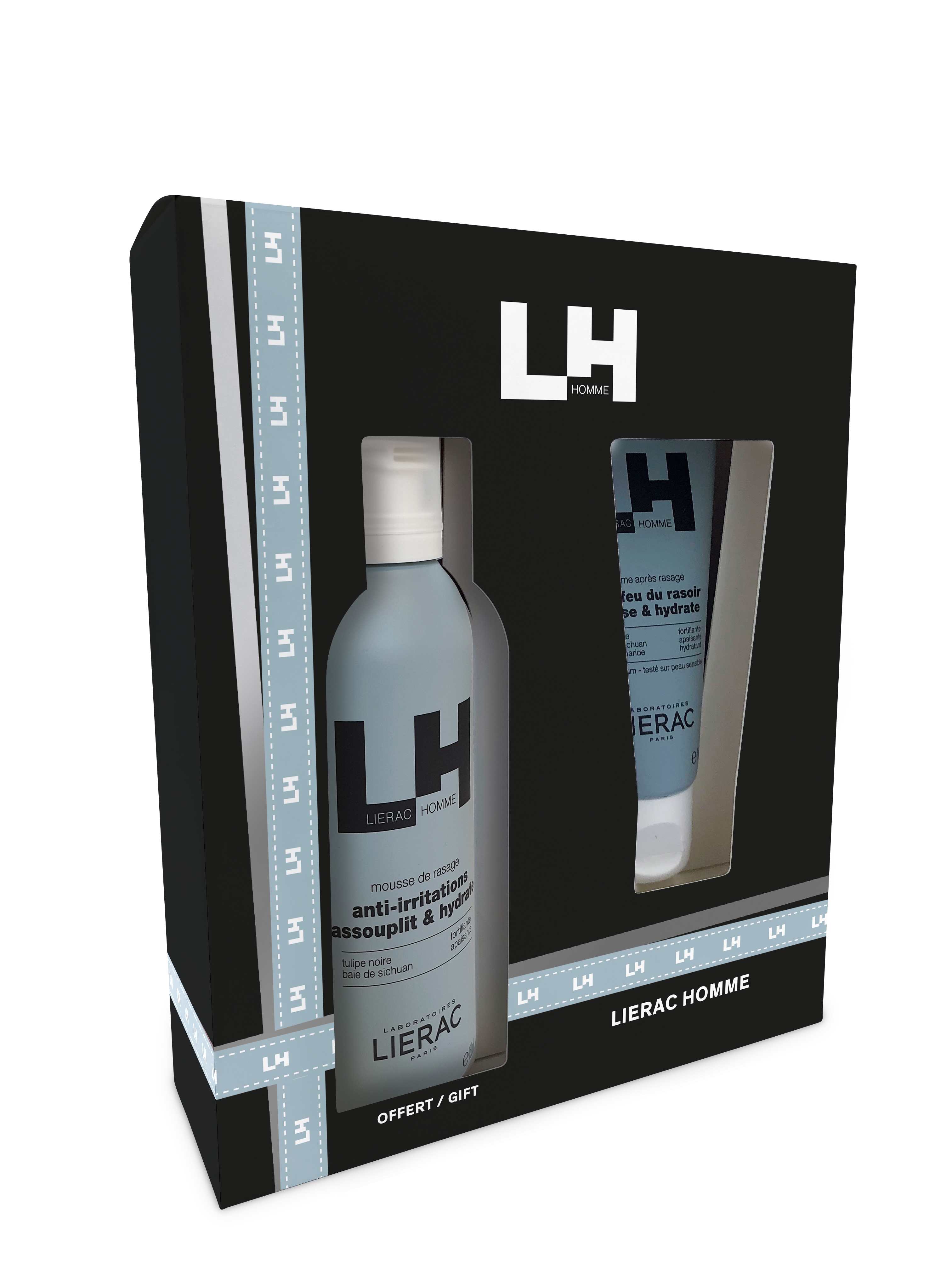 LIERAC HOMME AFTER-SHAVE BALM 75ML: INGREDIENTS : AQUA / WATER / EAU. GLYCERIN. SQUALANE. CAPRYLIC/CAPRIC TRIGLYCERIDE. NEOPENTYL GLYCOL DIHEPTANOATE. AMMONIUM ACRYLOYLDIMETHYLTAURATE/VP COPOLYMER. PENTAERYTHRITYL TETRAETHYLHEXANOATE. OLEYL ALCOHOL. MALTODEXTRIN. ETHYLHEXYLGLYCERIN. SODIUM BENZOATE. ZANTHOXYLUM BUNGEANUM FRUIT EXTRACT. CITRIC ACID. BIOSACCHARIDE GUM-1. TULIPA GESNERIANA FLOWER EXTRACT. HYDROGENATED PALM GLYCERIDES CITRATE. TOCOPHEROL. 1603A. LIERAC HOMME SHAVING FOAM 150ML: INGREDIENTS : AQUA / WATER / EAU. TRIETHANOLAMINE. PALMITIC ACID. STEARIC ACID. PEG-40 HYDROGENATED CASTOR OIL. BUTANE. PARFUM / FRAGRANCE. PROPANE. LAURETH-23. OLEYL ALCOHOL. ISOBUTANE. ZANTHOXYLUM BUNGEANUM FRUIT EXTRACT. MALTODEXTRIN. TOCOPHEROL. GLYCINE SOJA (SOYBEAN) OIL. TULIPA GESNERIANA FLOWER EXTRACT. HYDROGENATED PALM GLYCERIDES CITRATE. 1604B.