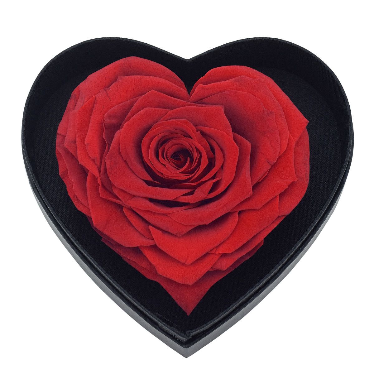 Cette boite en forme de coeur avec sa rose éternelle naturelle en forme de coeur est une œuvre artistique qui rend les cadeaux absolument uniques et magnifiques.