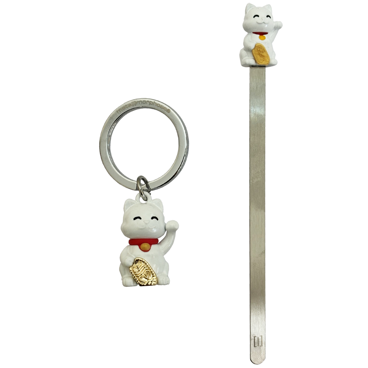 Coffret cadeau porte-clés et marque-pages Chat porte bonheur En métal Dimensions du coffret : Hauteur 4 cm - Largeur 9 cm - Profondeur 16 cm Hauteur du chat du porte clés : 3 cm Hauteur du chat du marque-pages : 2 cm Chaque chat porte bonheur, minutieusement conçu en métal, incarne la joie et la positivité. Que ce soit accroché à vos clés ou accompagnant vos pages préférées, ces adorables chats deviennent des compagnons pleins de charme.